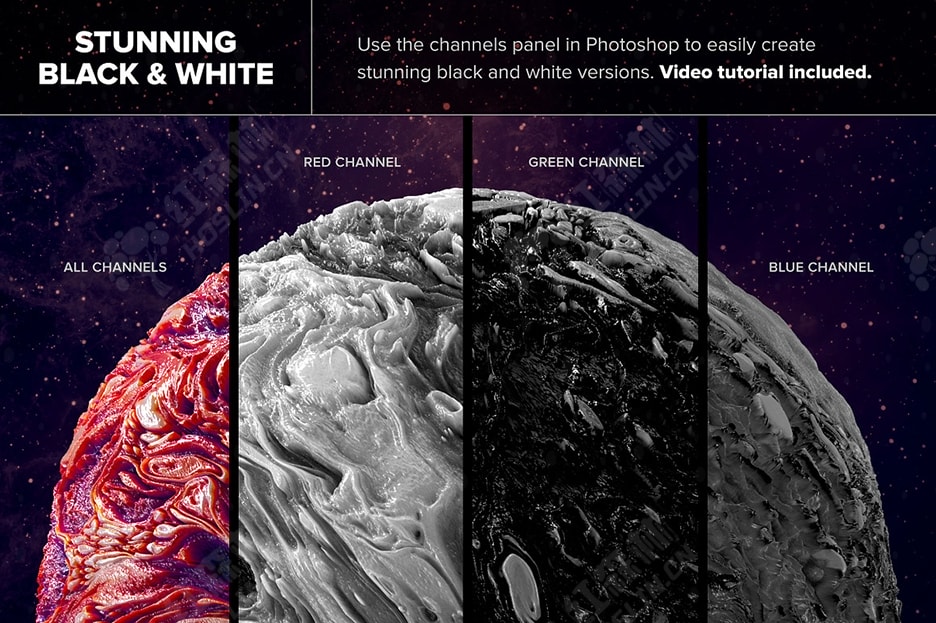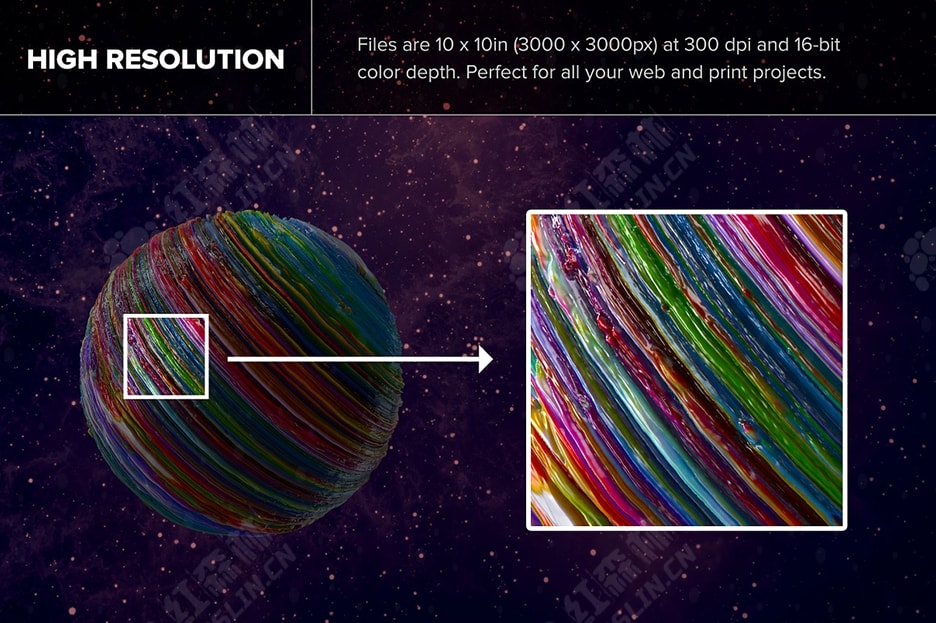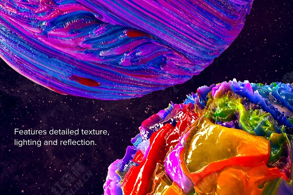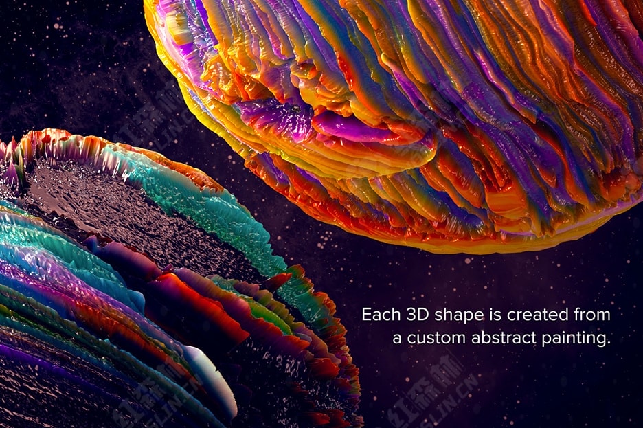 这些抽象的 3D 形状一定会在您进行的任何项目中引起注意。Planetary 是 Jim LePage 和 Mark Walczak 合作的作品。在 8 个月的时间里,Jim 画了大量的抽象画,然后 Mark 将这些画作创作成令人难以置信的独特抽象形状。 由于这些资源具有超高分辨率,因此它们非常适合印刷或网页图形,并且会给任何项目带来独特的感觉。使用完整形状或裁剪宏观细节。这些形状非常生动且色彩鲜艳,但您也可以使用 Photoshop 中的通道轻松创建一些令人难以置信的黑白变化。附有教程视频。