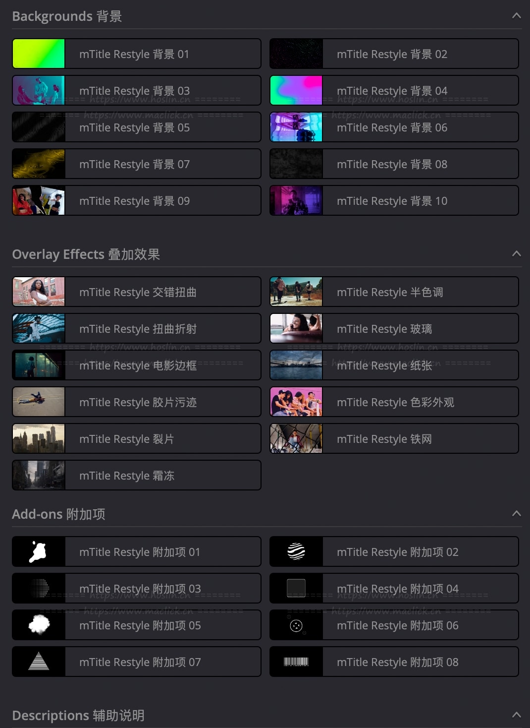 介绍 mTitle Restyle – 您处理所有排版问题的首选工具。掌握视频标题的形状,让它们变得前所未有的强大!? 这一系列动态、引人注目的预设将增强您的叙述,并帮助它传达视觉信息的每一个含义。为您的标题、字幕、YouTube 频道开场、过渡等制作动画,以获得更加动态的观看体验。这种排版很有说服力,可以让您吸引注意力、制造悬念并建立势头。从片头字幕到结尾,让您的所有编辑都完美无缺。