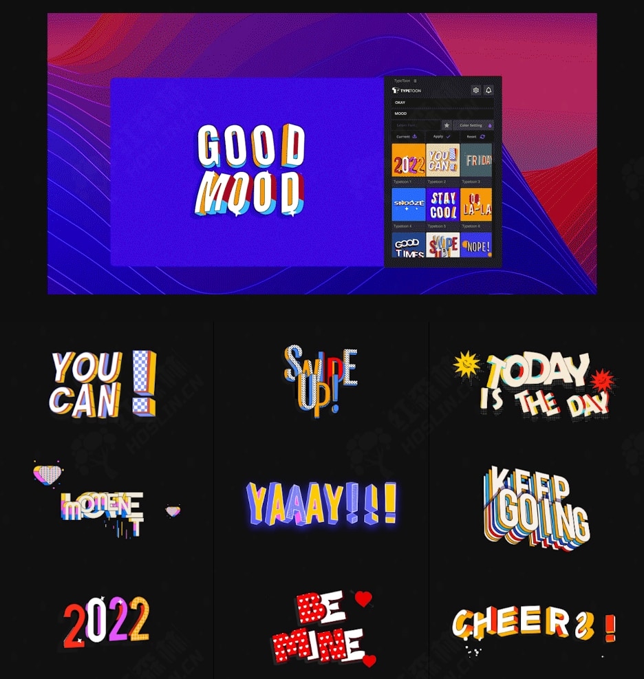 • 循环文本动画:TypeToon 在循环动画文本视频中生成文本动画。然后可以从 After Effects 中导出创建的文本,并将其用于视频海报、徽标展示、视频标题等。