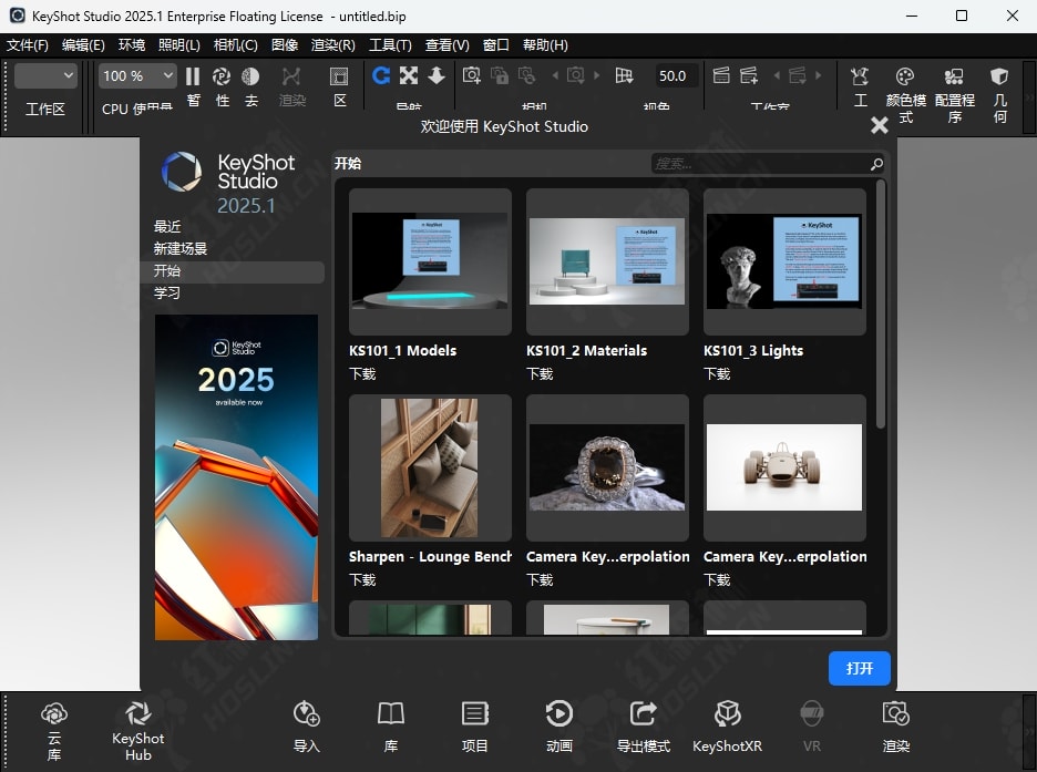 KeyShot Studio 2025 现已推出!我们很高兴为您带来 KeyShot Studio 2025 有史以来最快的渲染性能,它还包括全新的照明功能、客户要求的 UX 更新等。新功能: