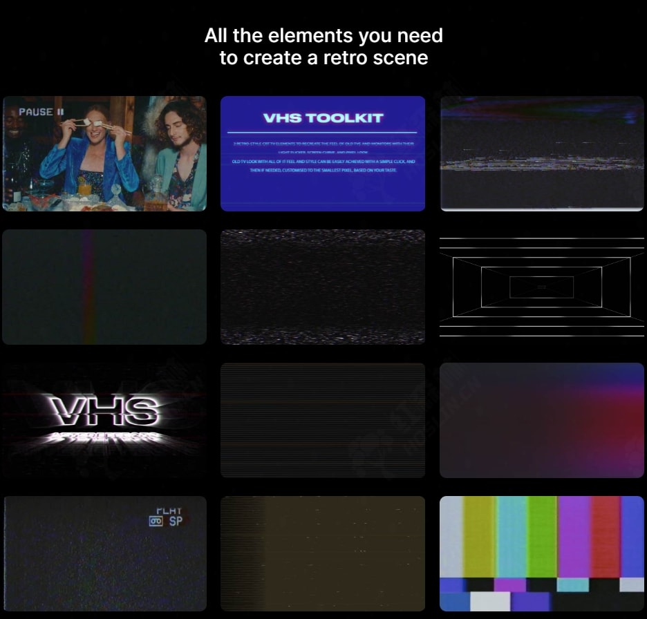 139 种复古风格的老式 VHS 磁带效果、故障和过渡,通过扭曲和调色板重现旧视频和相机的复古外观。这是一组高品质的效果和元素,可以将您的视频变成 70 年代、80 年代和 90 年代复古风格的 VHS 故障显示效果的录像带。每个 VHS 元素都具有高分辨率,以保留每个细节。项目包含53 (4K) 个 After Effects 项目,53 (4K) 叠加文件,21 (2K) 叠加文件和12 个徽标、背景和简介元素,这些元素涵盖了广泛的软件。您可以混合叠加两个甚至三个元素以获得独特的视觉效果!VHS Look 元素和模板可以轻松混合搭配,以创建独特而又熟悉的怀旧场景。