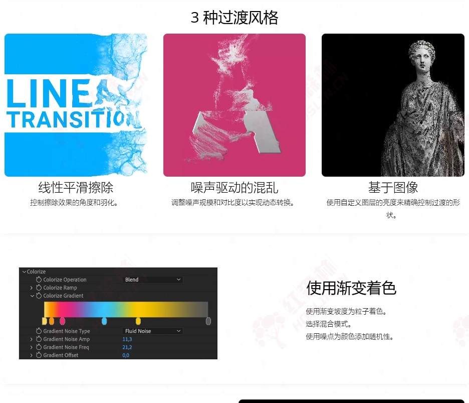 - 基于图像:使用黑白图像或预合成来精确控制过渡的形状。