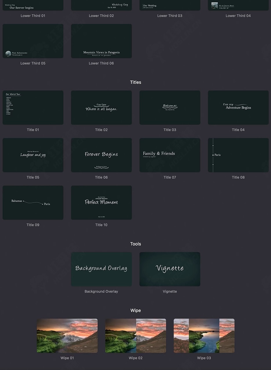 • 集成标题、过渡和下三分之一以获得精致的外观。