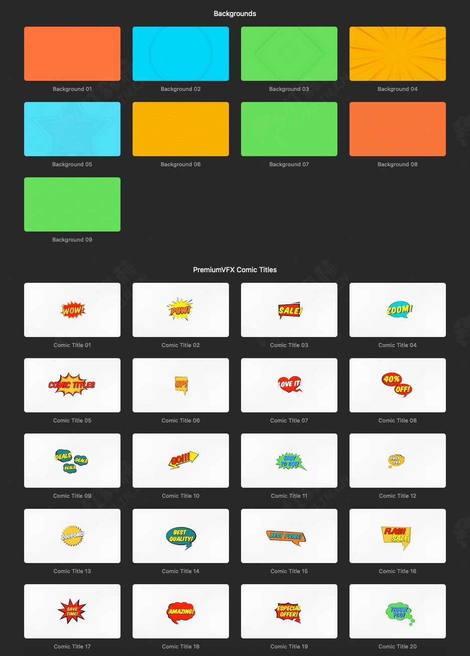 Comic Titles 是一组手绘漫画风格的标题和背景。用户友好,界面美观,动画效果出色。适用于任何类型的项目。包含20个漫画标题9个动画背景,您可以轻松更改持续时间、颜色、大小等。非常适合创建全帧标题动画,让任何内容都看起来酷炫无比。