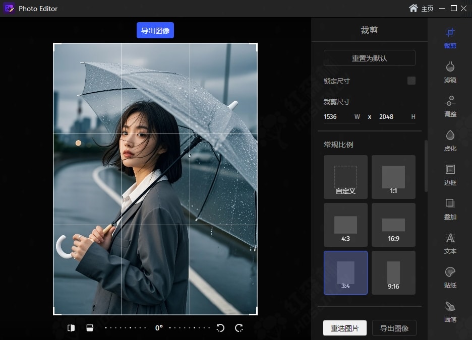 - 高级裁剪工具:让您精准裁剪图像的特定区域,从而专注于最重要的元素并移除不需要的部分。您可以从各种预设的宽高比中进行选择,也可以自定义裁剪尺寸以满足您的特定需求。