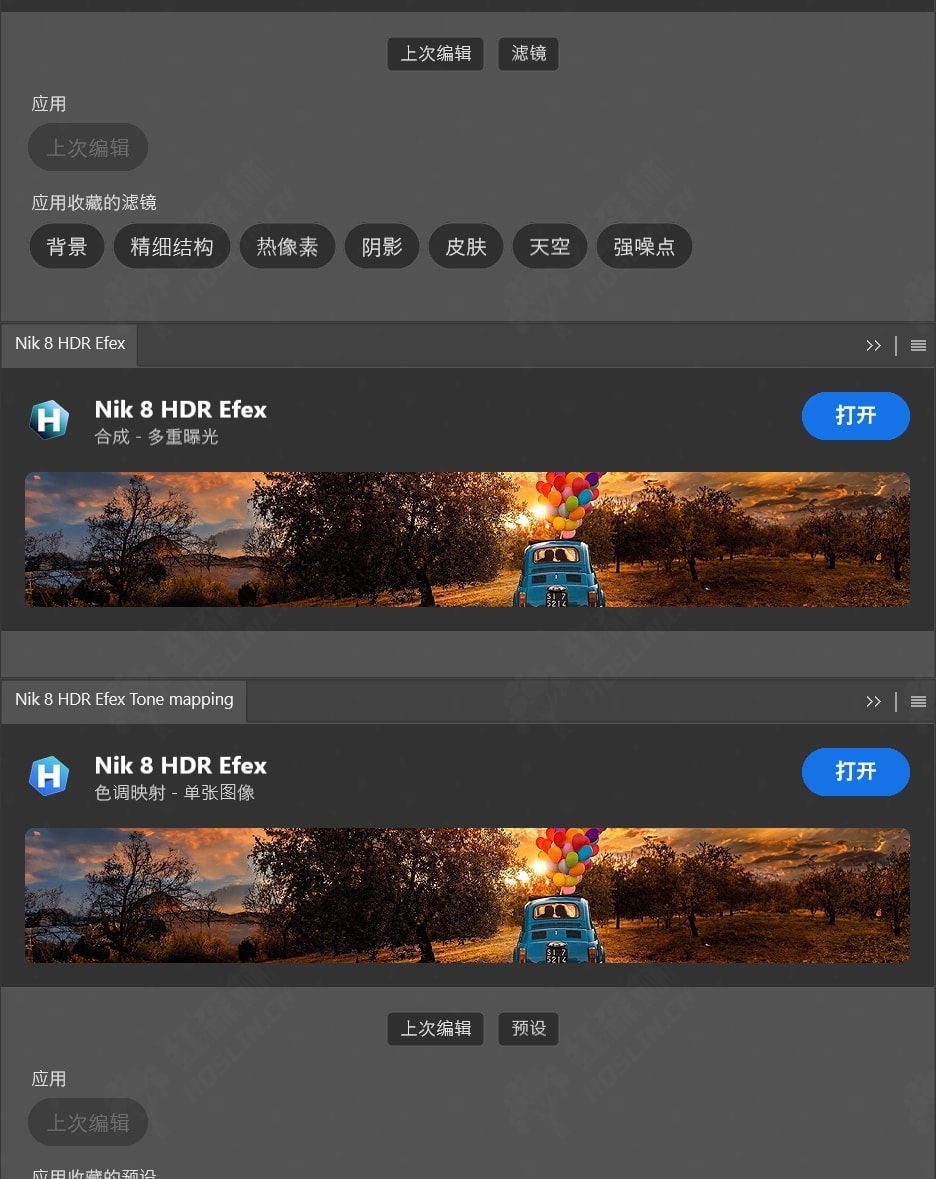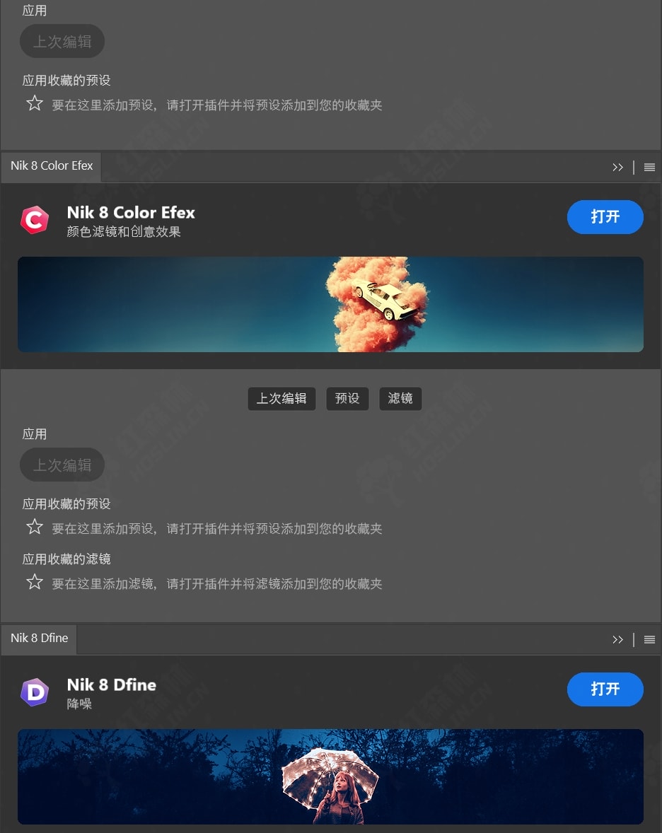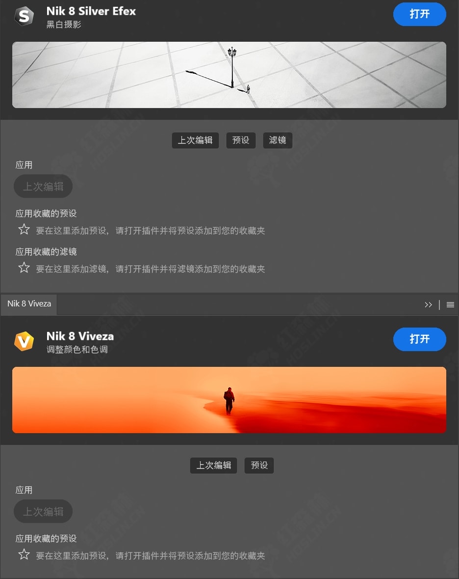 插件支持:Photoshop/Lightroom 2021,2022,2023,2024,2025,2026;D.x.O PhotoLab 7、8、9;Serif Affinity Photo 1.8 及更高版本、Serif Affinity Photo 2.0(Nik HDR Efex 合并功能和 Nik Collection “切换到”模式与 Affinity 不兼容)