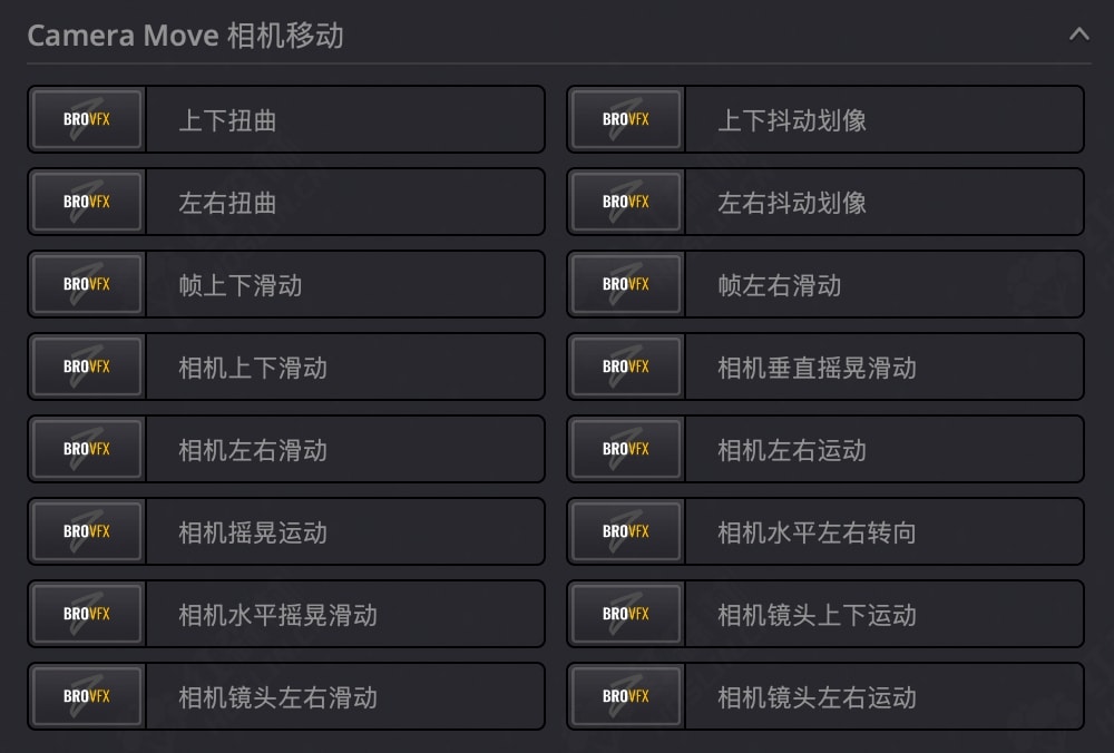 - 相机运动模拟:如“相机移动垂直滑动”、“相机移动水平滑动”、“相机移动上下滑动”、“相机移动左右滑动”,增强空间感和运动感;