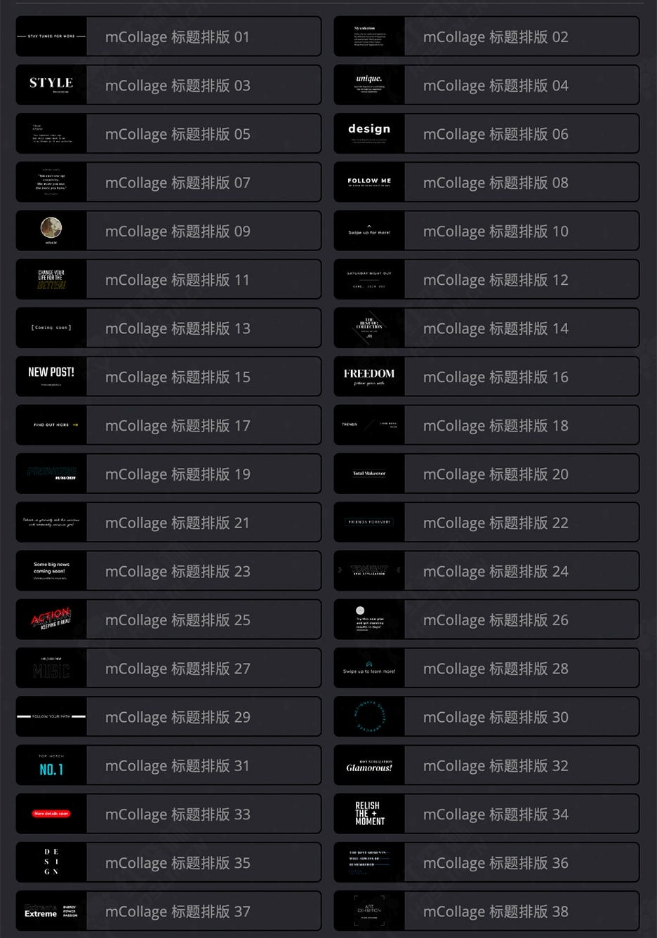 mCollage 是一款功能强大的插件,拥有易于使用的设计功能,可帮助您创建引人注目的故事和其他社交媒体视频。加快创作流程,轻松制作社交媒体内容,比以往任何时候都更有趣!每个行业都依赖于潜在客户的观点,而故事已成为获得更多宣传和关注的最有效手段之一。无论您的内容创作目标是什么,保持视觉效果清晰、赏心悦目且引人入胜都至关重要。mCollage 拥有易于使用的设计功能,可帮助您创建引人注目的故事和其他社交媒体视频。它拥有庞大的高级制作工具、排版布局和美化效果库,您可以根据需要组合和修改它们,以获得令人惊叹的效果。无论您是品牌还是有影响力的数字创作者,您都可以加快创作流程,轻松制作社交媒体内容,比以往任何时候都更有趣。传达您的信息,吸引更多人关注您的个人资料、频道或产品!