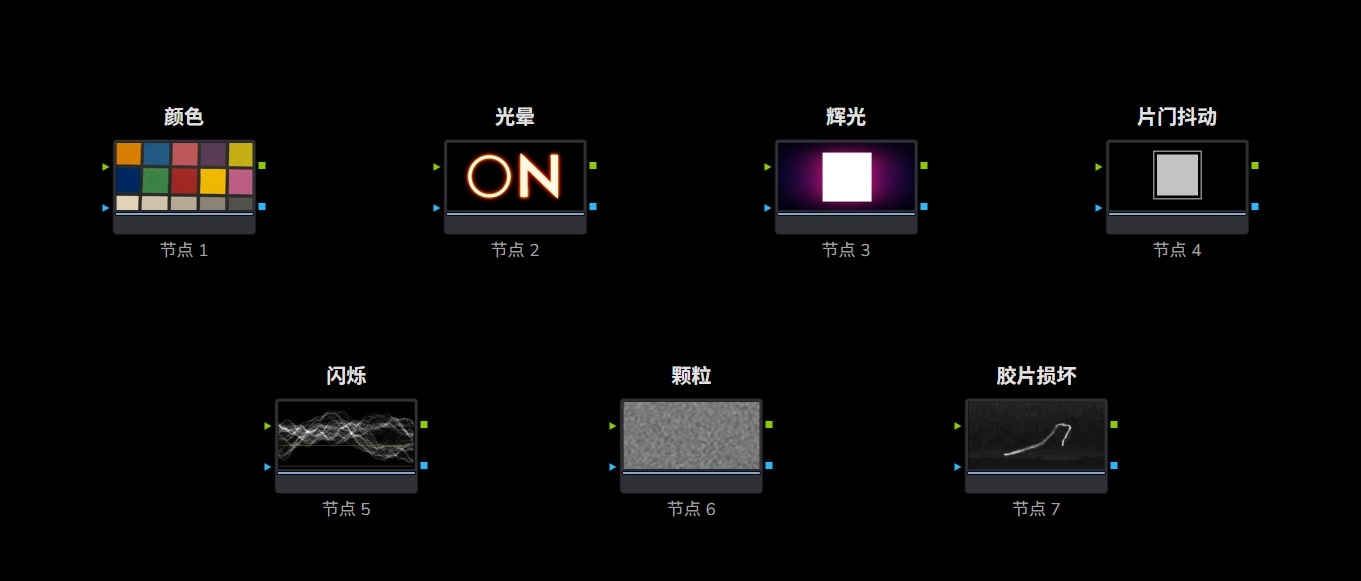 节点 6:颗粒。胶片颗粒是指感光卤化银胶片在曝光后会变成纯金属银,从而产生随机的光学纹理。尝试不同的设置可达到意想不到的颗粒感。