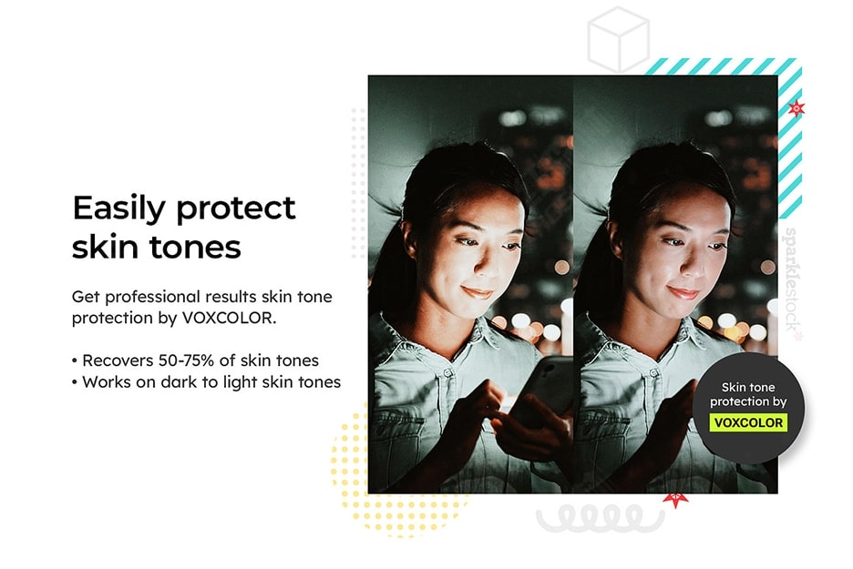 - ✔️ 使用 VOXCOLOR SmoothTones 和 Skin Tone Protection 增强以获得专业效果。