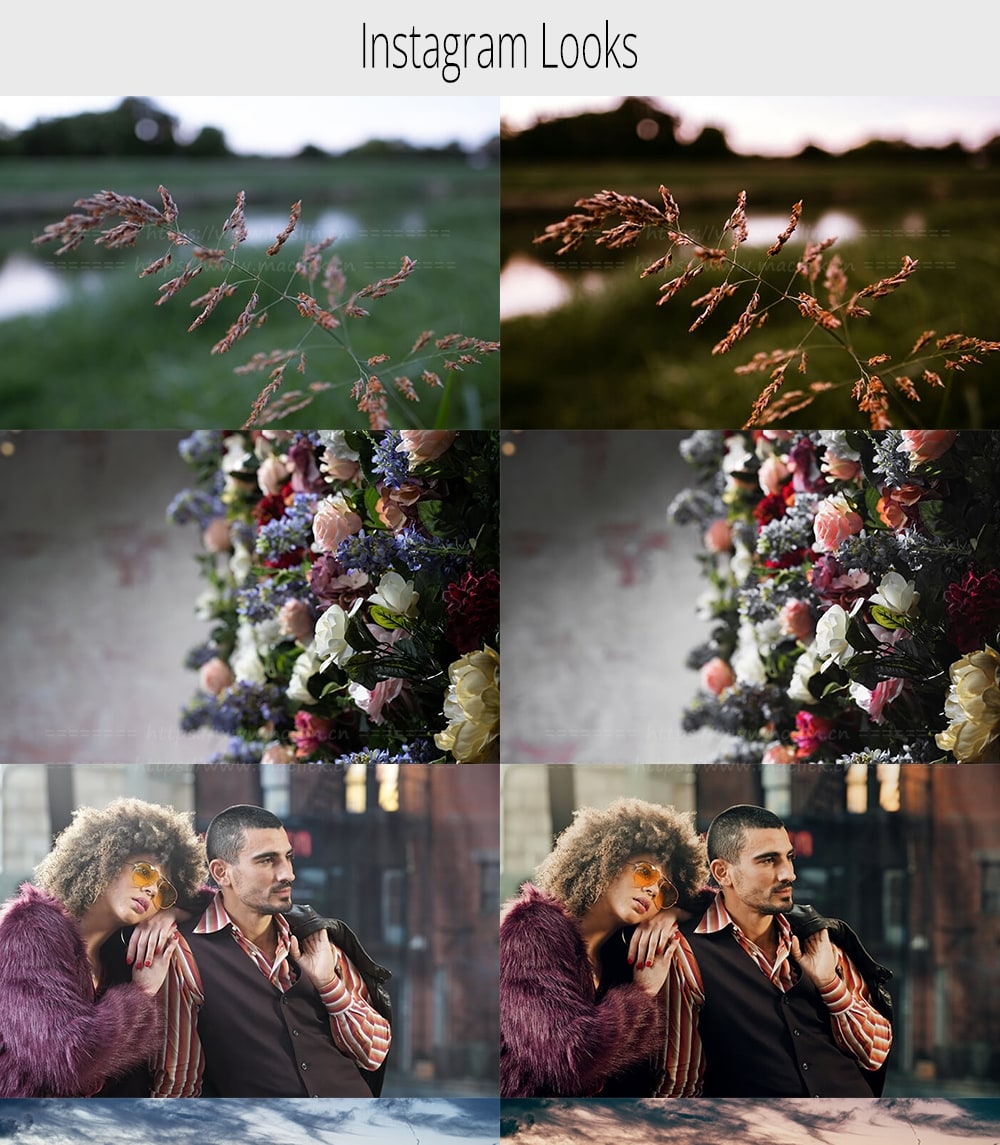 - Instagram Looks:Instagram 无疑是当今最受欢迎的摄影平台。这 4 款预设旨在为你打造独特的视觉效果,让你的照片焕发光彩,脱颖而出。