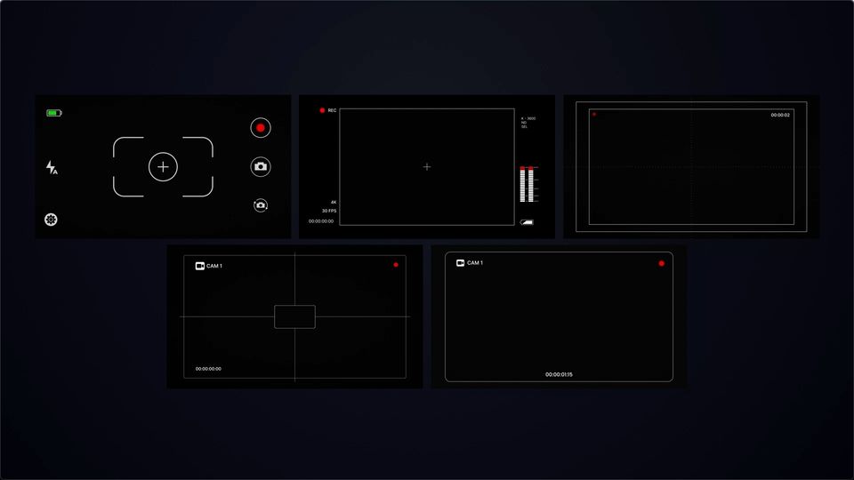 最适合您的5款相机取景器!这些取景器模板完全可自定义,安装简便。非常适合您的无人机素材或任何其他科技视频。适用于 DaVinci Resolve 19.0 或更高版本。支持 4K 和全高清。内含详细教程。