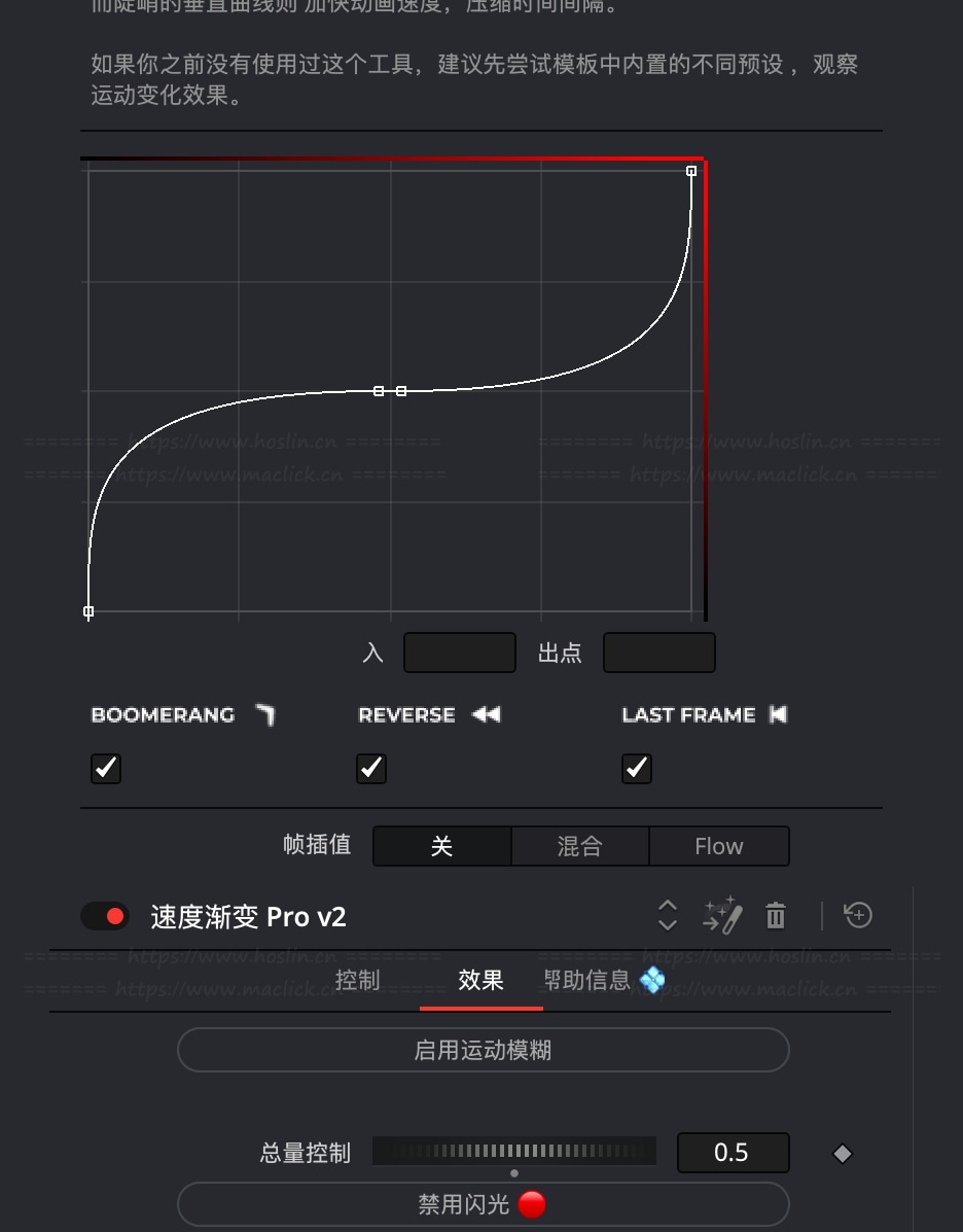 - 自定义动态模糊 – 可在混合动态模糊(稳定且可预测)和光流模糊(平滑、高质量的模糊)之间选择。所有设置均可完全调整。