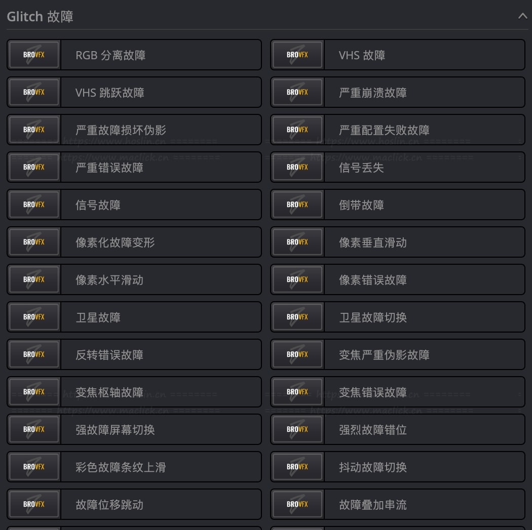 Glitch 是 BroVFX 提供的一款故障特效转场包,旨在为视频创作者打造有冲击力的故障风画面效果。它包含多种高质量的故障效果如像素失真、色彩偏移、数字干扰、RGB 分离、图像抖动、扫描线、噪点、色块跳跃等一应俱全,快速营造科幻或故障风的视觉氛围。适合科幻片、音乐视频、电子竞技剪辑或任何需要电波干扰、系统故障等视觉表达的创意用途。
