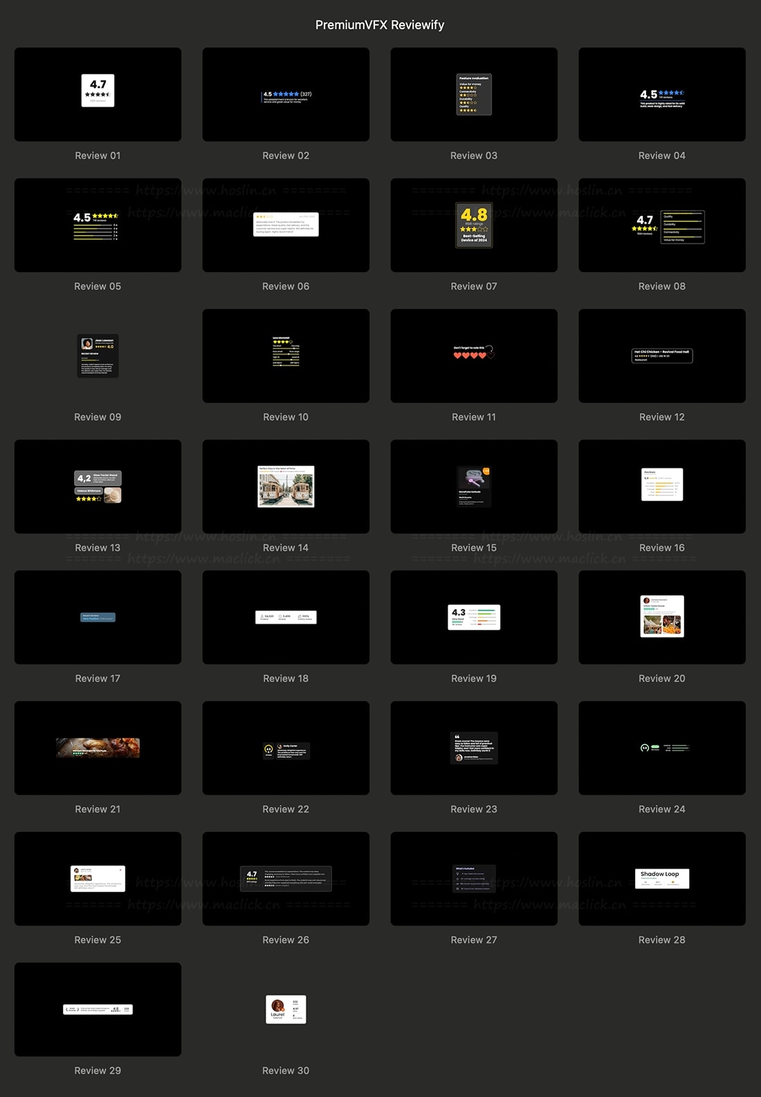 为您的视频添加星级评分、标题和动态图形用于创建视频评论。Reviewify 提供 30 个简洁易用的可自定义模板,方便您为视频添加评价、评分和反馈。其星级评分从 0 到 5,布局现代,非常适合产品评价、应用展示或服务分析。所有功能均可在 Final Cut Pro 中实现。