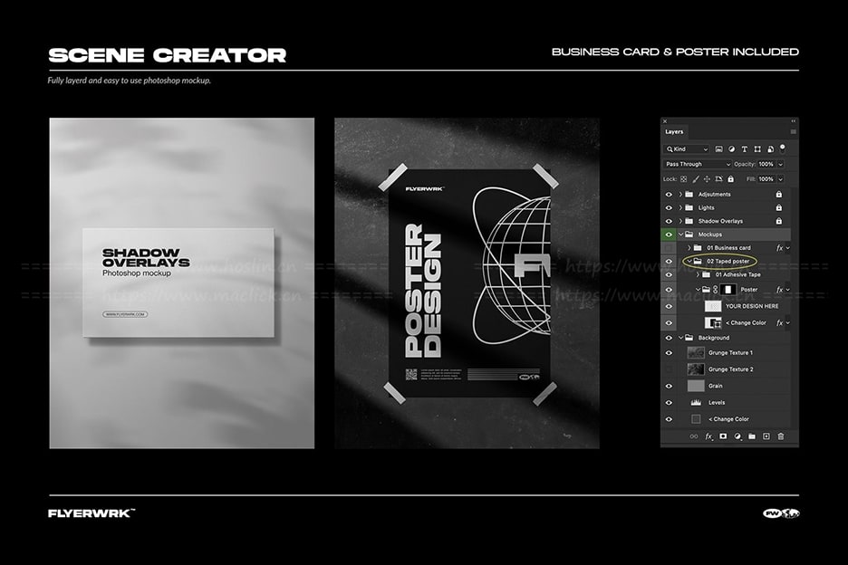 使用我们的阴影叠加包,为你的模型锦上添花。它可以快速添加完美的阴影,让你的设计不仅看得见,更能感受到。一个 Photoshop 文件包含 16 个阴影叠加,你的模型将变得更加酷炫。