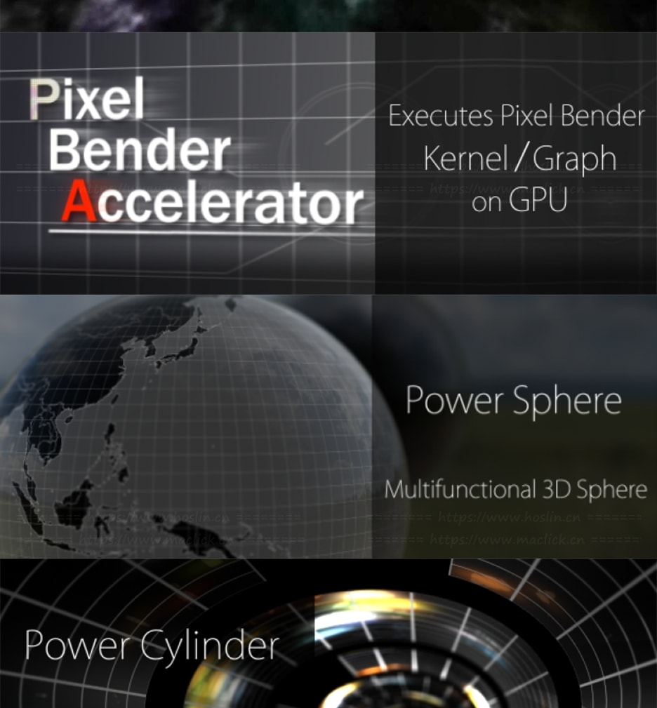 - Pixel Bender Accelerator v1.2.3:Pixel Bender Accelerator (PBA) 是一款原生 After Effects 插件,它利用显卡的 GPU 运行 Pixel Bender 滤镜。除了提升运行速度外,它还意味着您可以在 CS6 及更高版本中运行 Pixel Bender 文件!Pixel Bender 是一种视频处理语言,可以轻松创建图像和视频处理滤镜。您可以使用 Pixel Bender 语言以独立于硬件的方式实现图像处理算法(滤镜或效果)。