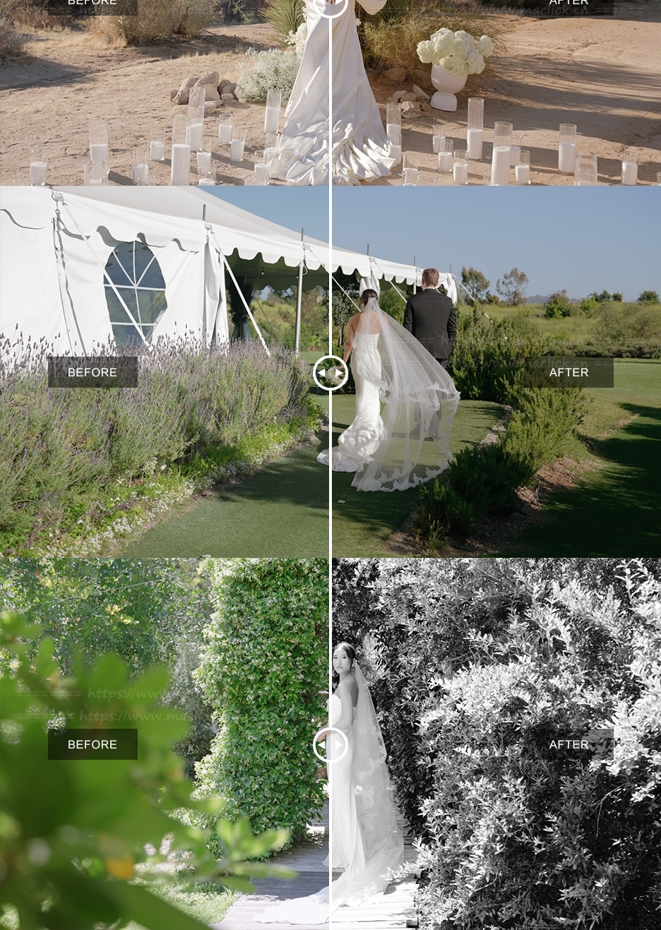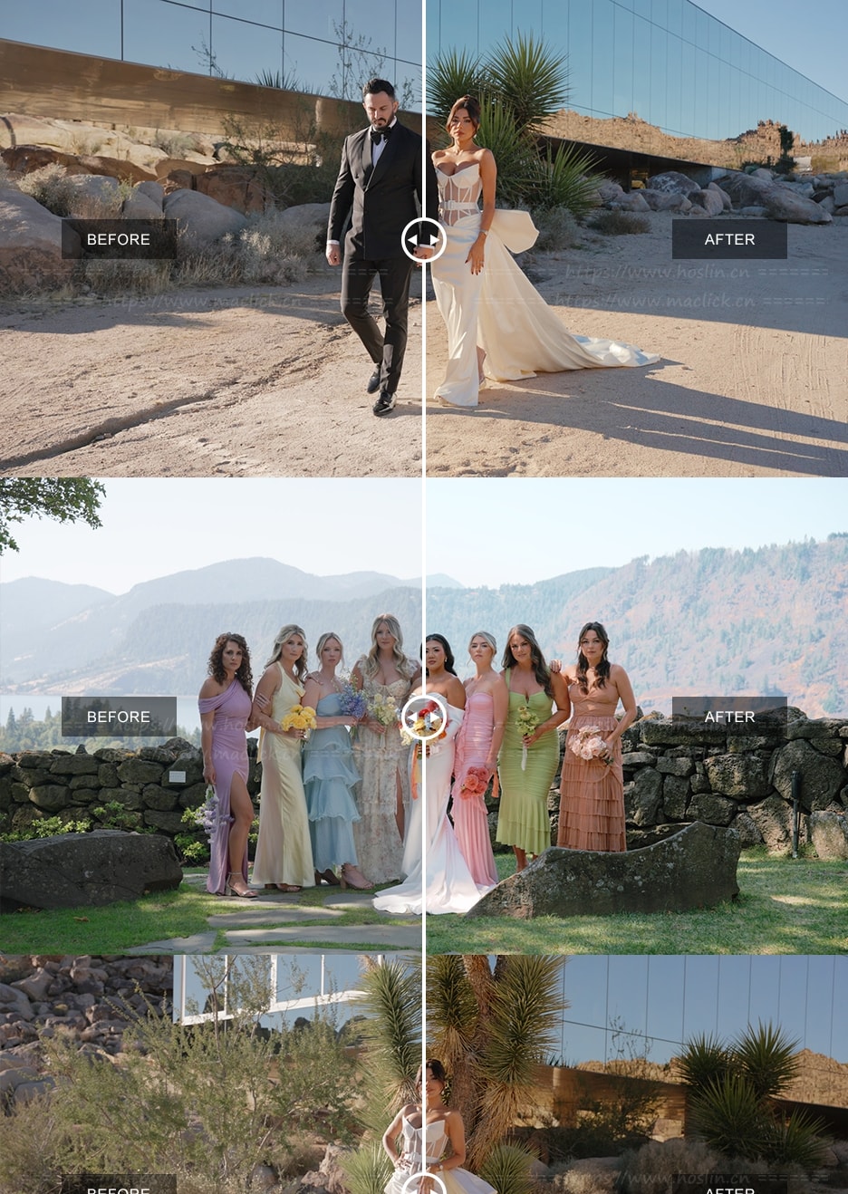- Bright:我们的明亮LUT为您的影片增添明亮、鲜活的色调,同时保持色彩自然逼真。它非常适合明亮的户外场景,增强整体温暖感和清晰度,让您的婚礼影片充满新鲜感和光线,同时又不会掩盖婚礼当天的自然美景。