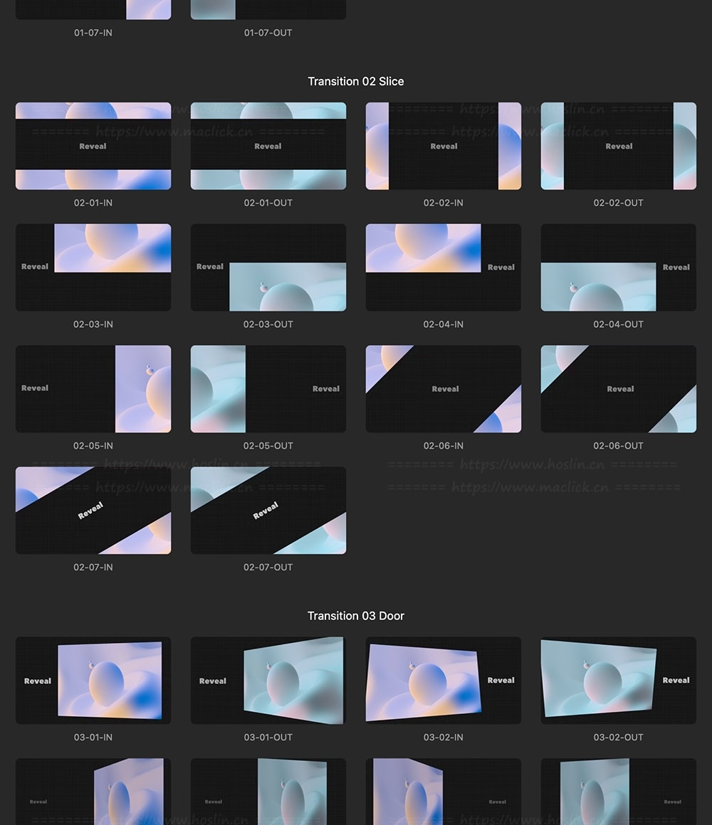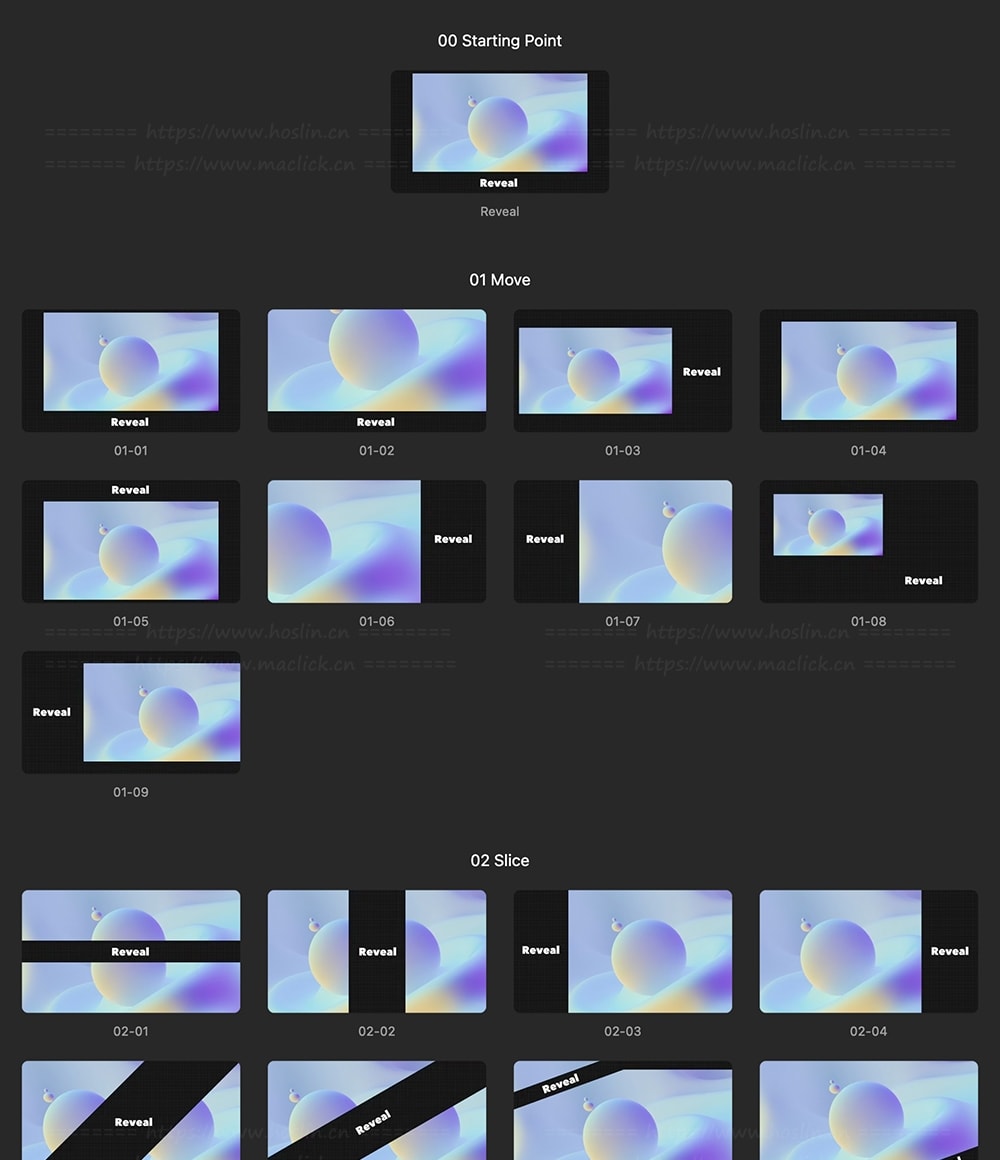 - 动态显示效果 – 移动、切片、门和洞效果,以创建结构化的显示。