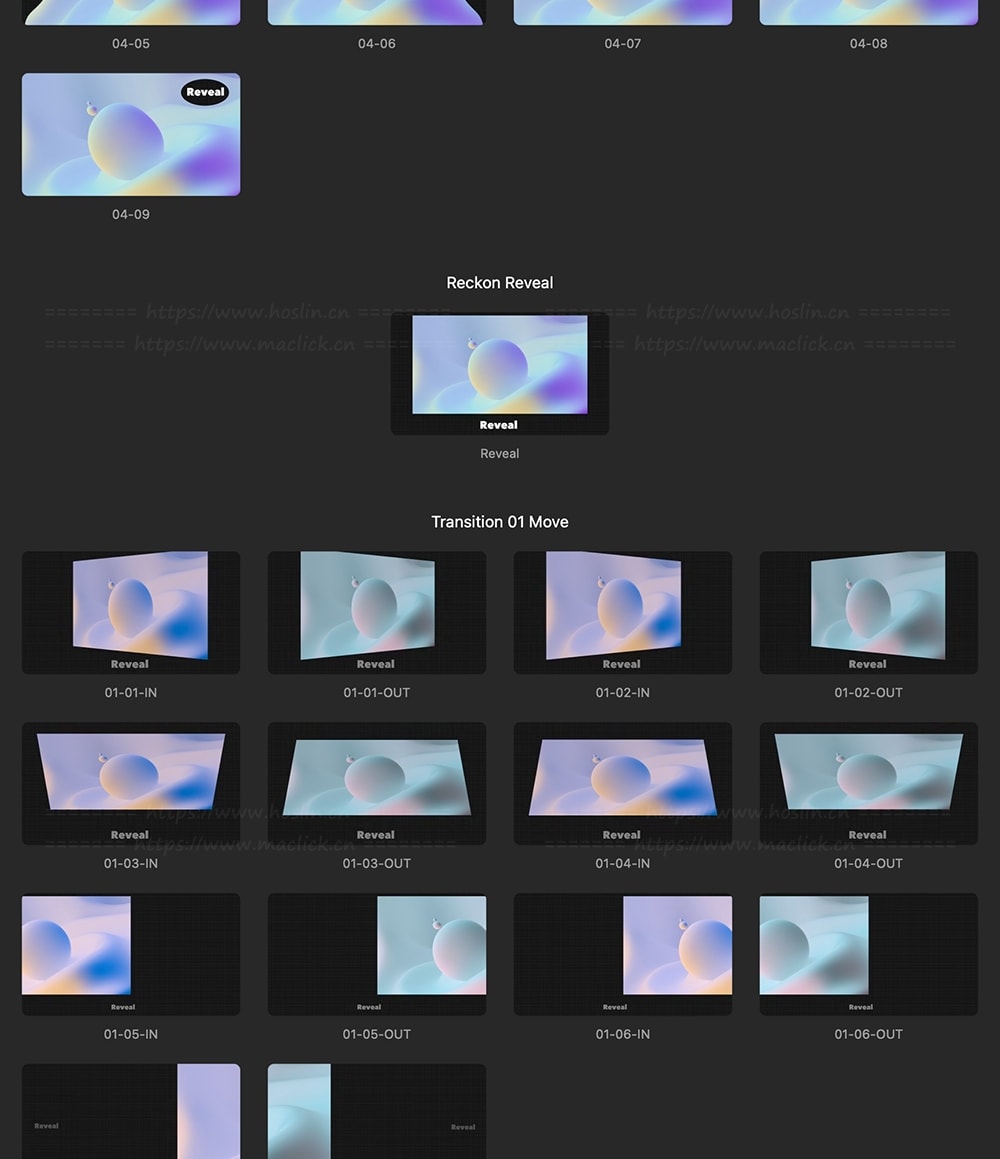 Reckon Reveal 包含 90 多个可轻松应用的预设,让您轻松快速地获得专业效果。此外,它支持所有常见的视频宽高比,确保不同项目之间的兼容性。