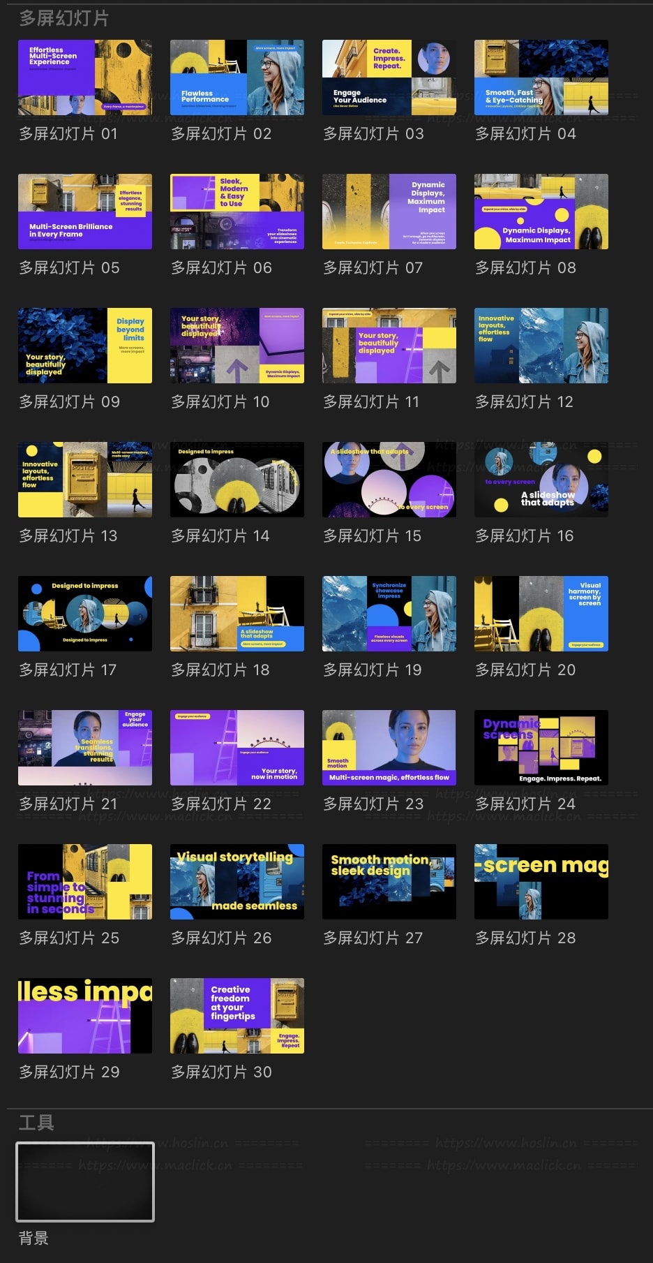 先进的多屏布局,打造结构化的视觉叙事。厌倦了 PowerPoint 式的幻灯片?多屏幻灯片制作,力求令人印象深刻。这款插件专为 Final Cut Pro 设计,提供30个影院级多屏布局,并可轻松自定义。无需专业技能即可为您的编辑添加动感、风格和结构。它流畅、快速,并且可灵活扩展。非常适合那些想要获得干净、现代效果的编辑者。每个动画布局均支持多图像投放区、可编辑文本、动画进出效果、自定义色彩与形状样式,适合制作企业展示、创意简报或视频宣传片。通过直观的参数控制与快速预览功能,您可以在几分钟内创建出专业、动感十足的演示内容,让你的项目在众多演示中脱颖而出。
