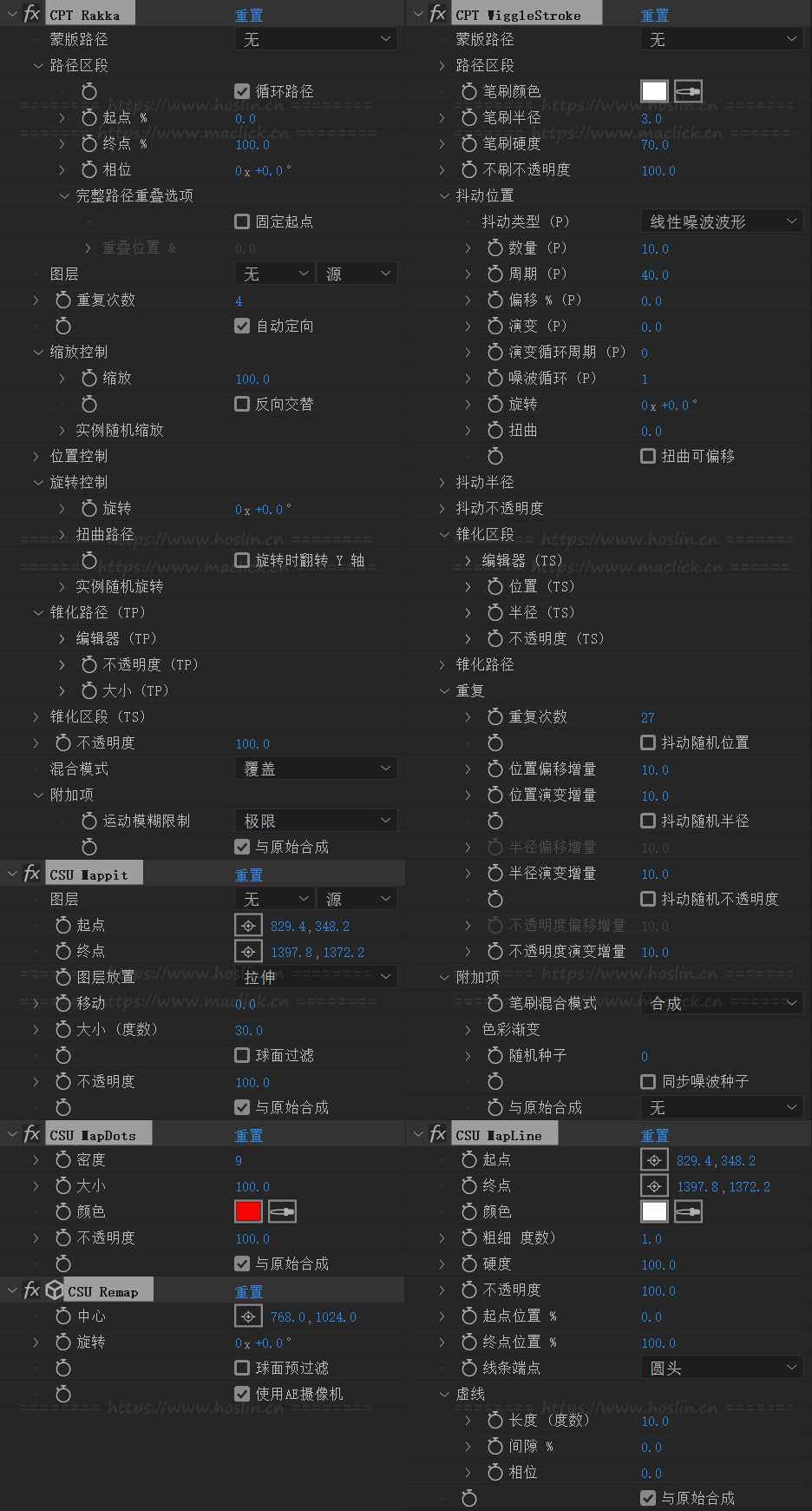 Cycore Path Tools v1.3.2 路径工具:Path Tools 包含两个强大的插件:Rakka 和 Wiggle Stroke。这两个插件用于基于蒙版路径创建动画。。Rakka 需要额外的图层来沿着选定的蒙版路径“叠加”(或重复)。基于这些基本要求,这两个滤镜都提供了几乎无限的组合控制,可以创建从最基本的动画到极其独特的效果和背景元素的各种效果。