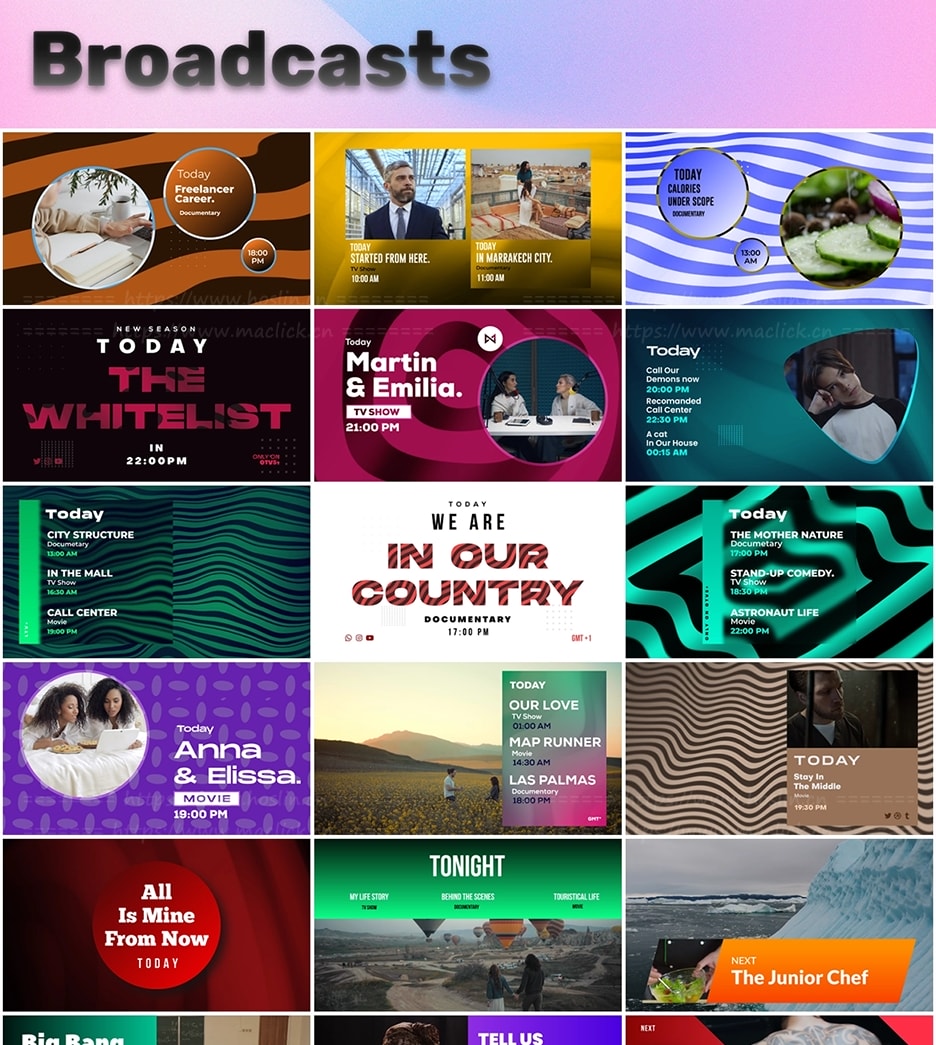 50 个广播场景,释放您的创造力!这款创意动态图形包包含 50 个适用于 After Effects 的即用型场景。无论您是设计惊艳、现代、色彩缤纷、简约还是创意十足的场景,此包都能满足您的一切需求,让您轻松打造现代、创意、专业的动画场景。
