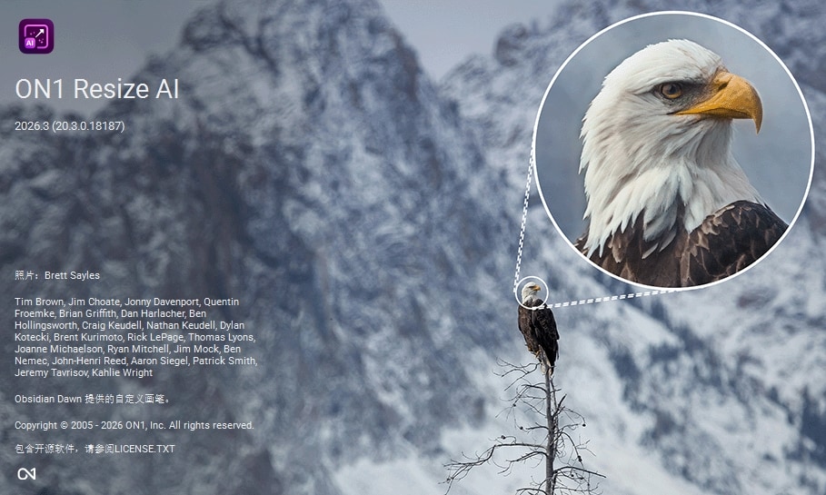 ON1 Resize AI 2026 是业界领先的图像缩放软件,可创建令人惊艳的高质量照片放大效果。它采用先进的超分辨率 AI 技术,允许摄影师将图像放大高达 10 倍,同时保持甚至增强精细细节、锐度和边缘清晰度。无论您是准备打印、放大裁剪、升级 AI 生成的图像,还是修复旧照片,Resize AI 都能提供无与伦比的效果,不会出现伪影或模糊。