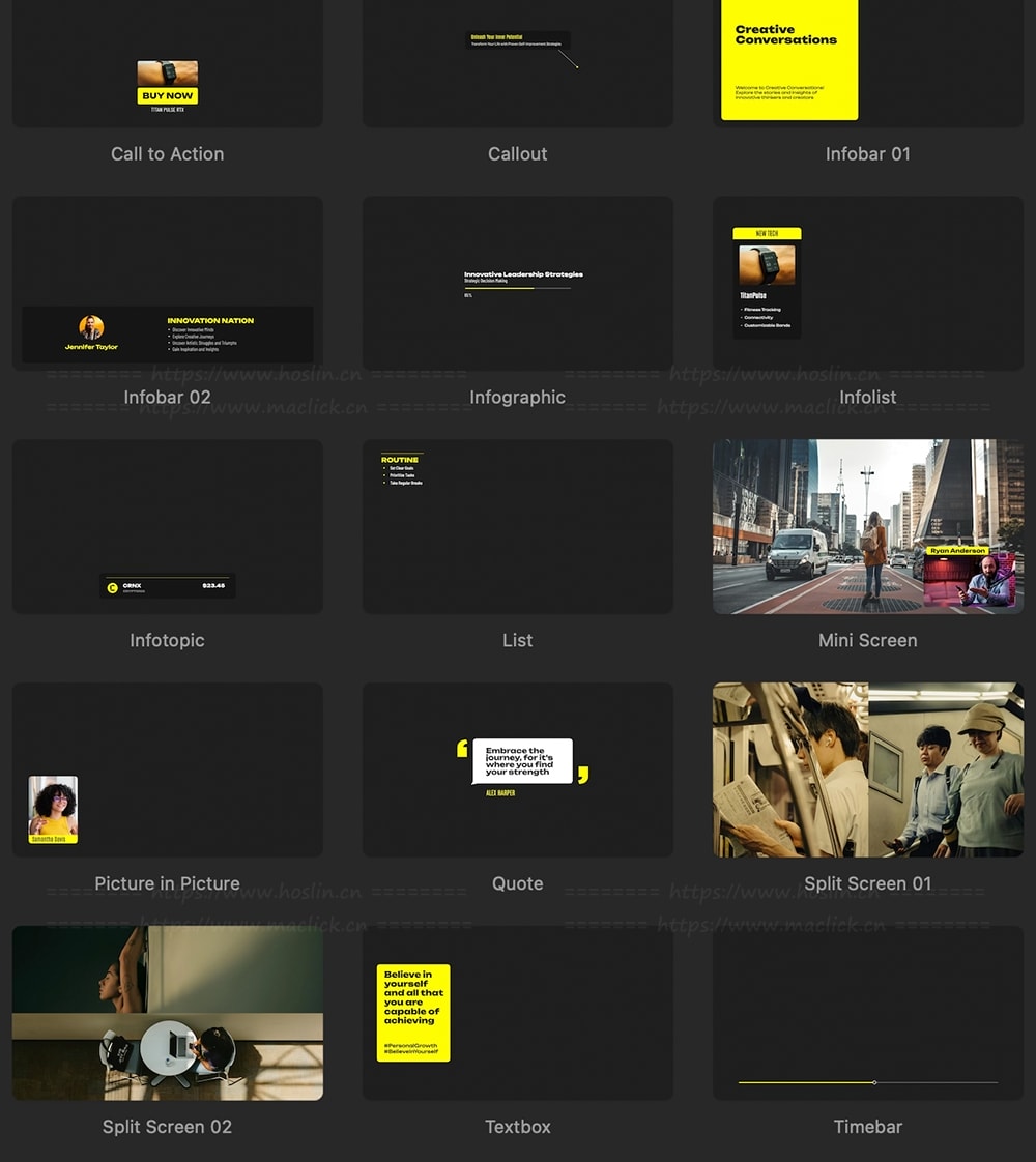 网格布局、标注、标题、转场和分屏,助您轻松完成日常工作。此工具包是您进行简洁、极简视频编辑的首选工具。其中包含各种模板,包括网格、画中画、标注、分屏、下沿字幕、标题、转场等等。Essential Tools 旨在简化您的工作流程,同时不影响质量。无论您是制作预告片、视频博客、社交媒体内容还是完整影片,这些模板都能适用于任何项目。简单易用、功能多样、简洁直观。Essential Tools 是您顺利完成工作所需的一切。