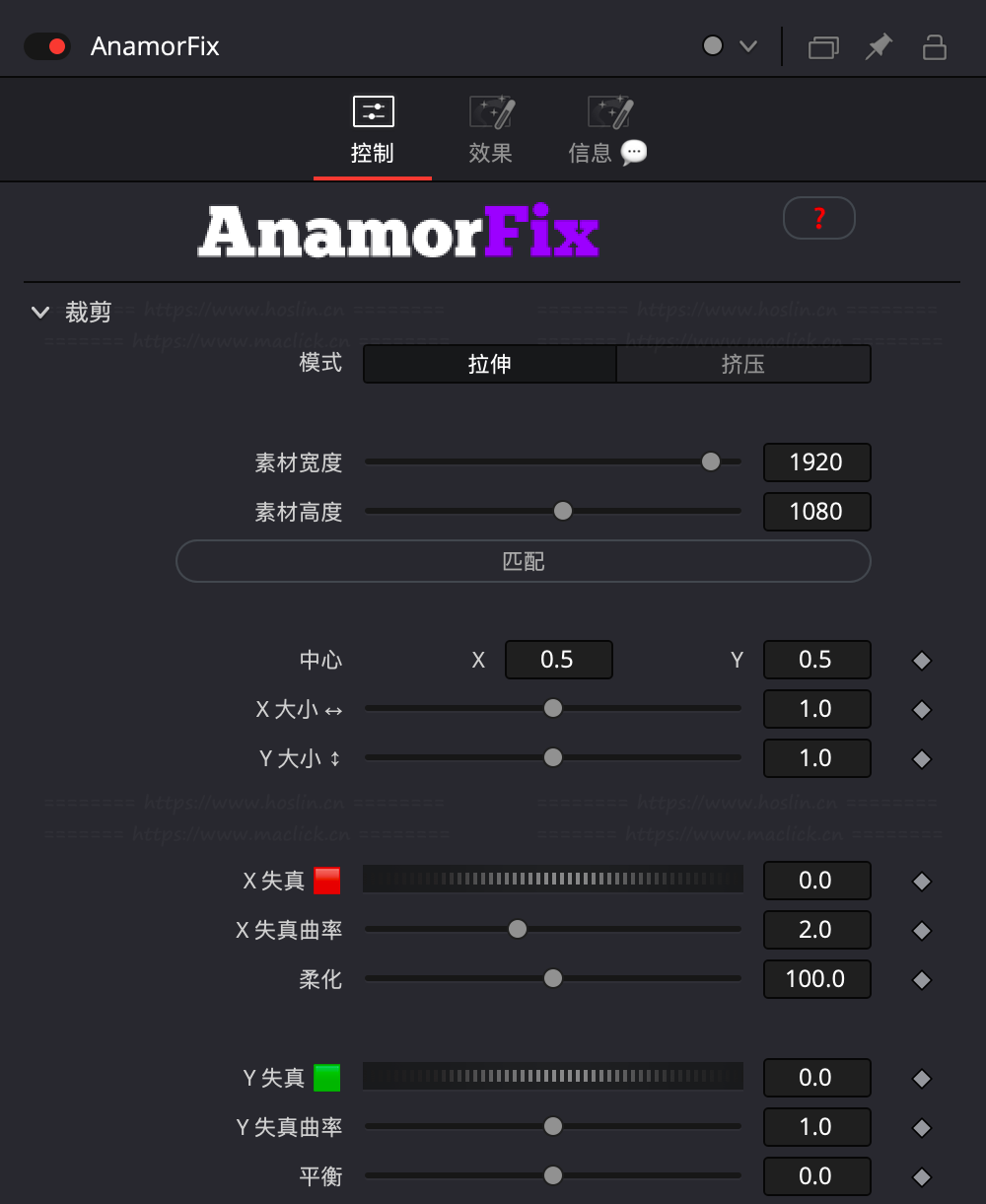 使用AnamorFix创建令人惊叹的电影效果 – 这是一款多功能的视频比例调整工具!这款插件可让您轻松将任何素材调整为所需的格式,打造独特的艺术风格,或精准地满足技术要求。AnamorFix具有直观的界面、灵活的参数和内置校准工具,可轻松适应任何项目。