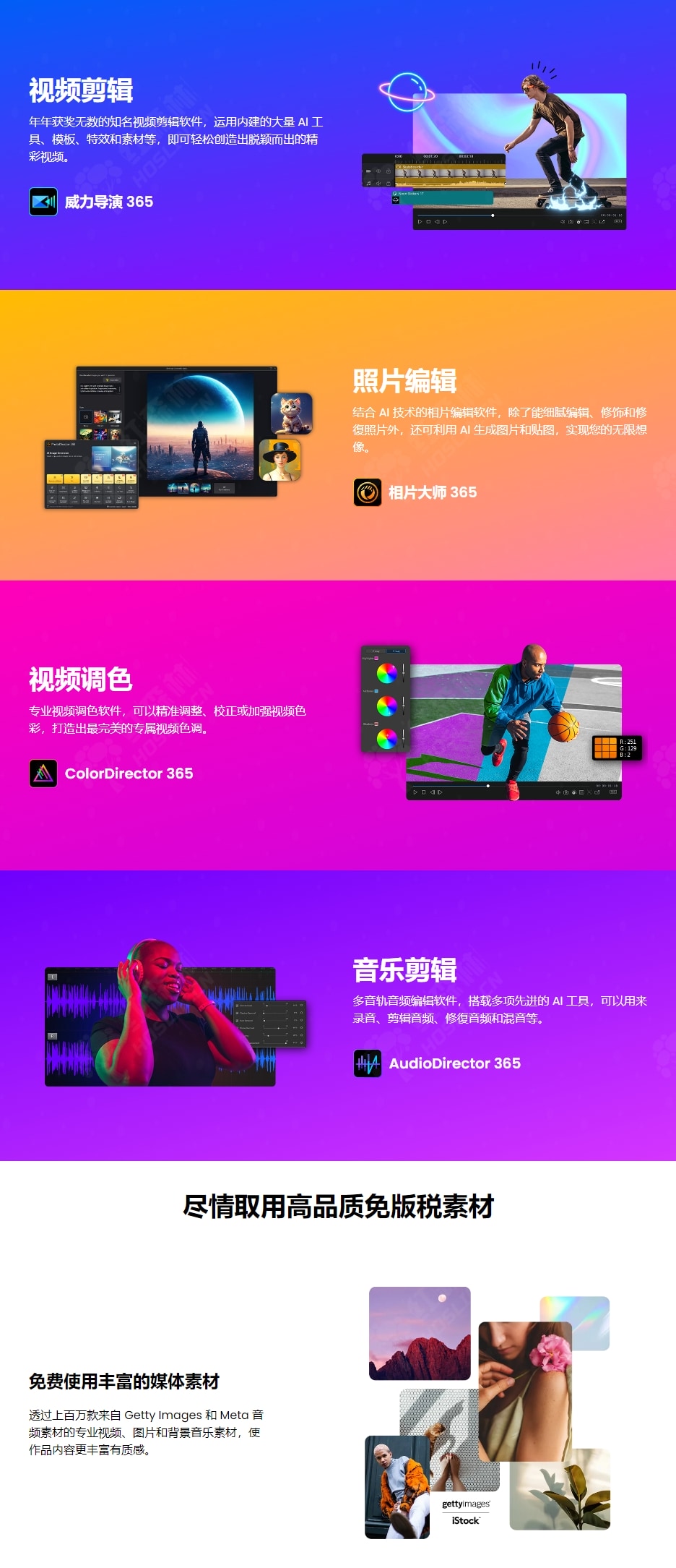 - 视频剪辑 – PowerDirector(威力导演):年年获奖无数的知名视频剪辑软件,运用内建的大量 AI 工具、模板、特效和素材等,即可轻松创造出脱颖而出的精彩视频。
