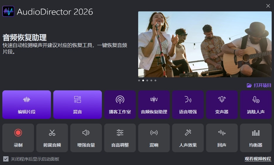 - 音乐剪辑 – AudioDirector:多音轨音频编辑软件,搭载多项先进的 AI 工具,可以用来录音、剪辑音频、修复音频和混音等。