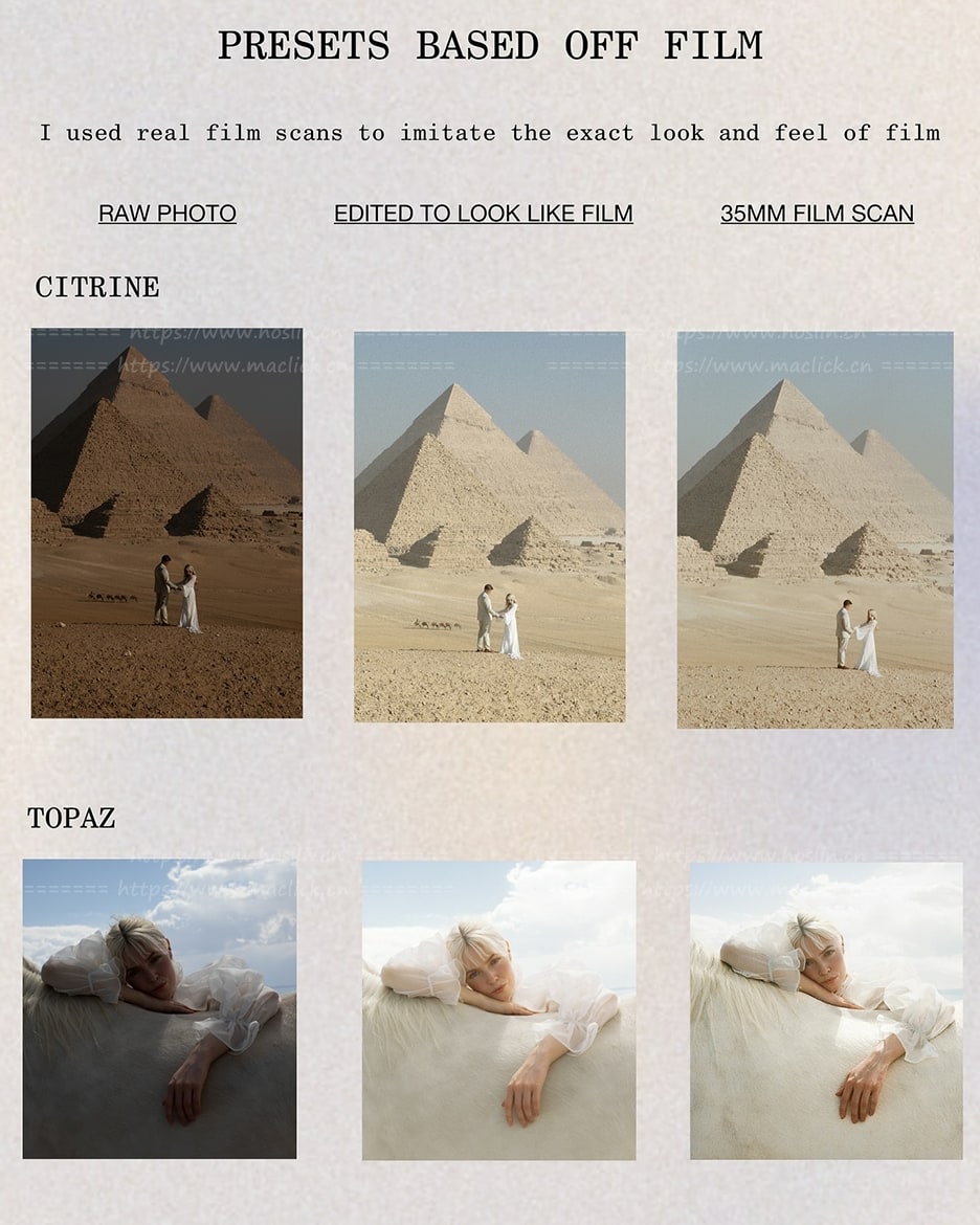 我上一个预设包发布于2022年,此后我在色彩分级和匹配35mm胶片扫描方面进行了更多尝试。这是我迄今为止最喜欢的预设包,也是我过去一年一直在使用的。希望你们也和我一样喜欢它们。?