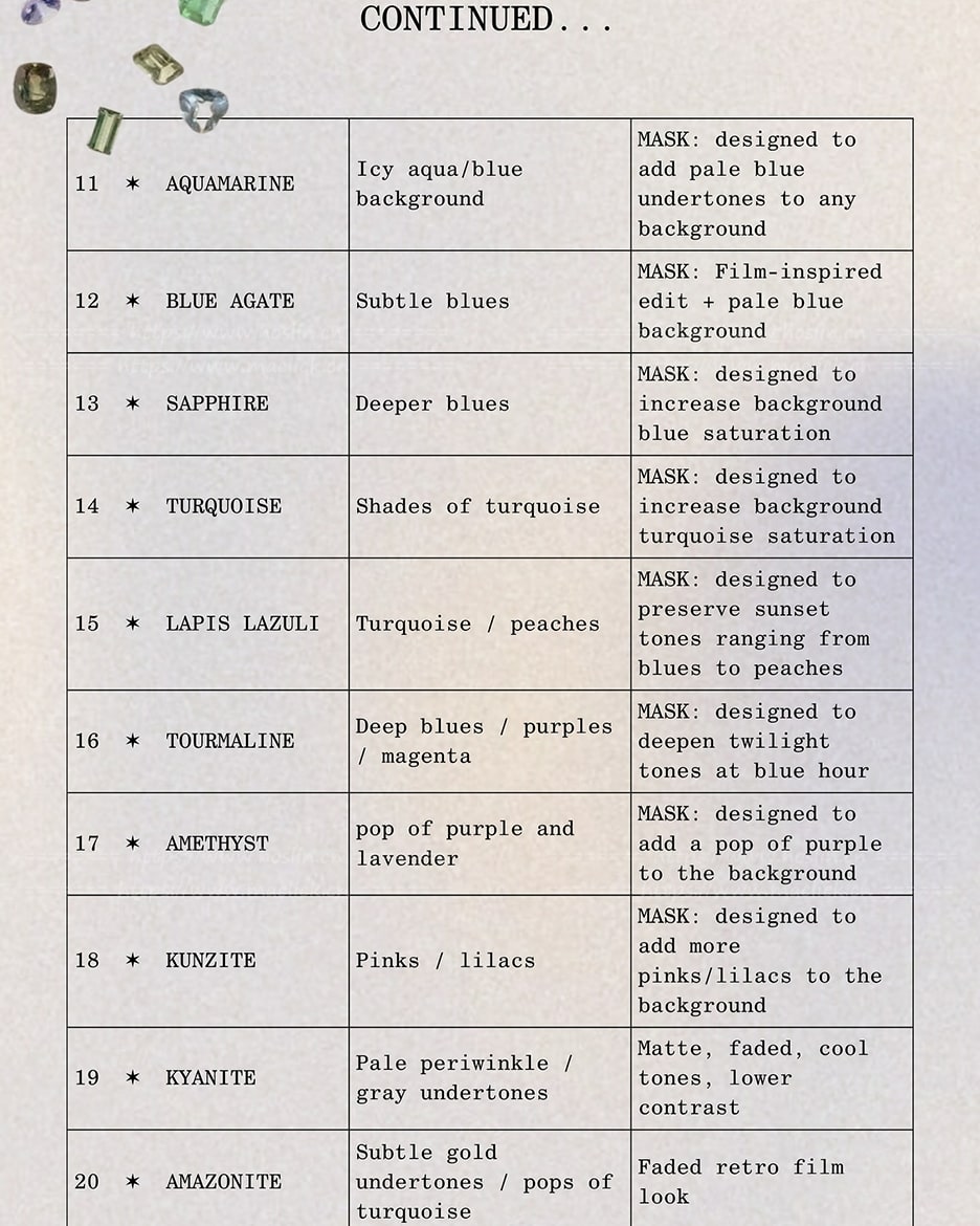 我的最新预设包“宝石”(Gemstone)正式上线啦!☆⋆.✶