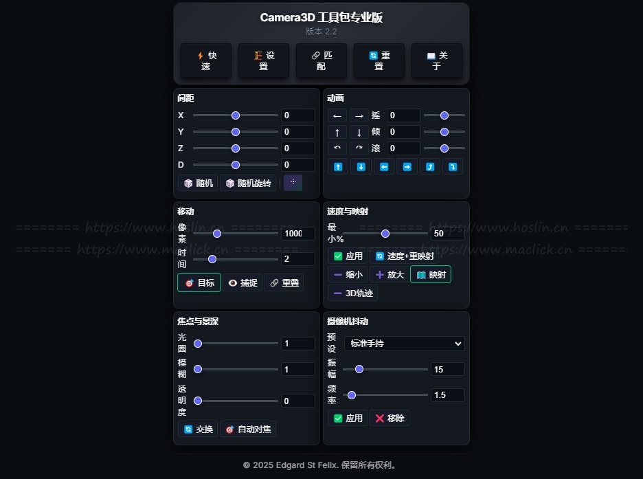 - 11. ? 移动控制 – 精确控制相机移动,可自定义距离和持续时间。