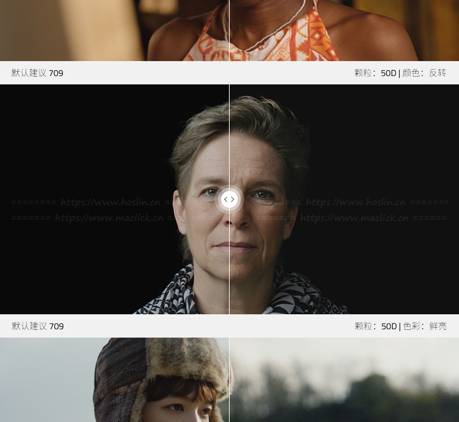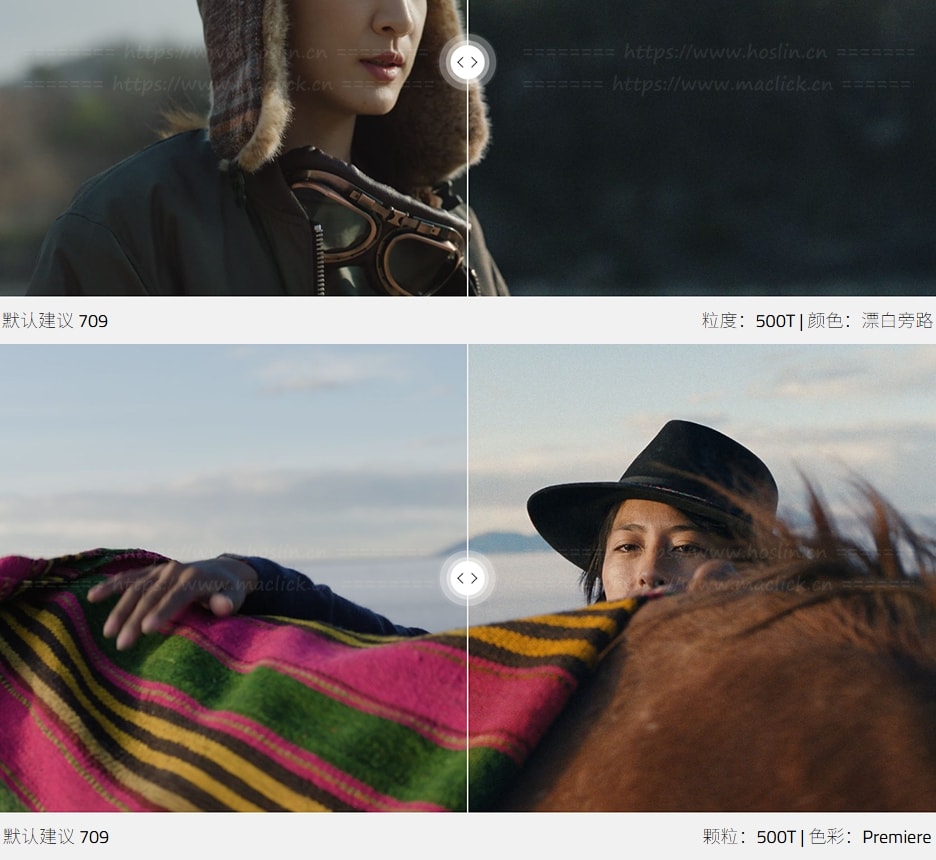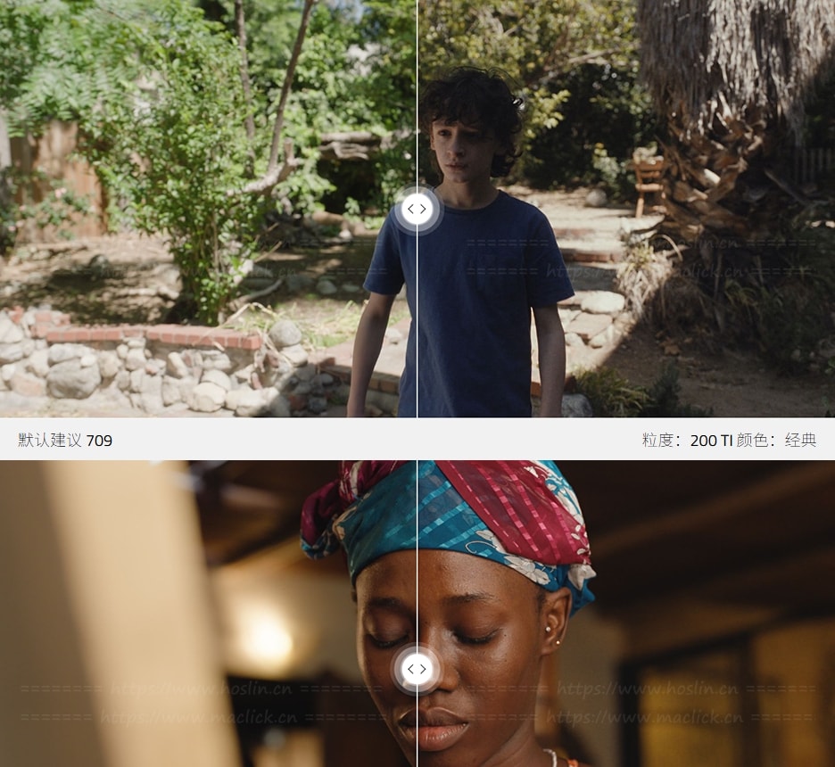 - 胶片颗粒:可以设置逼真的胶片颗粒感,相当于 50D、200T 或 500T 底片。