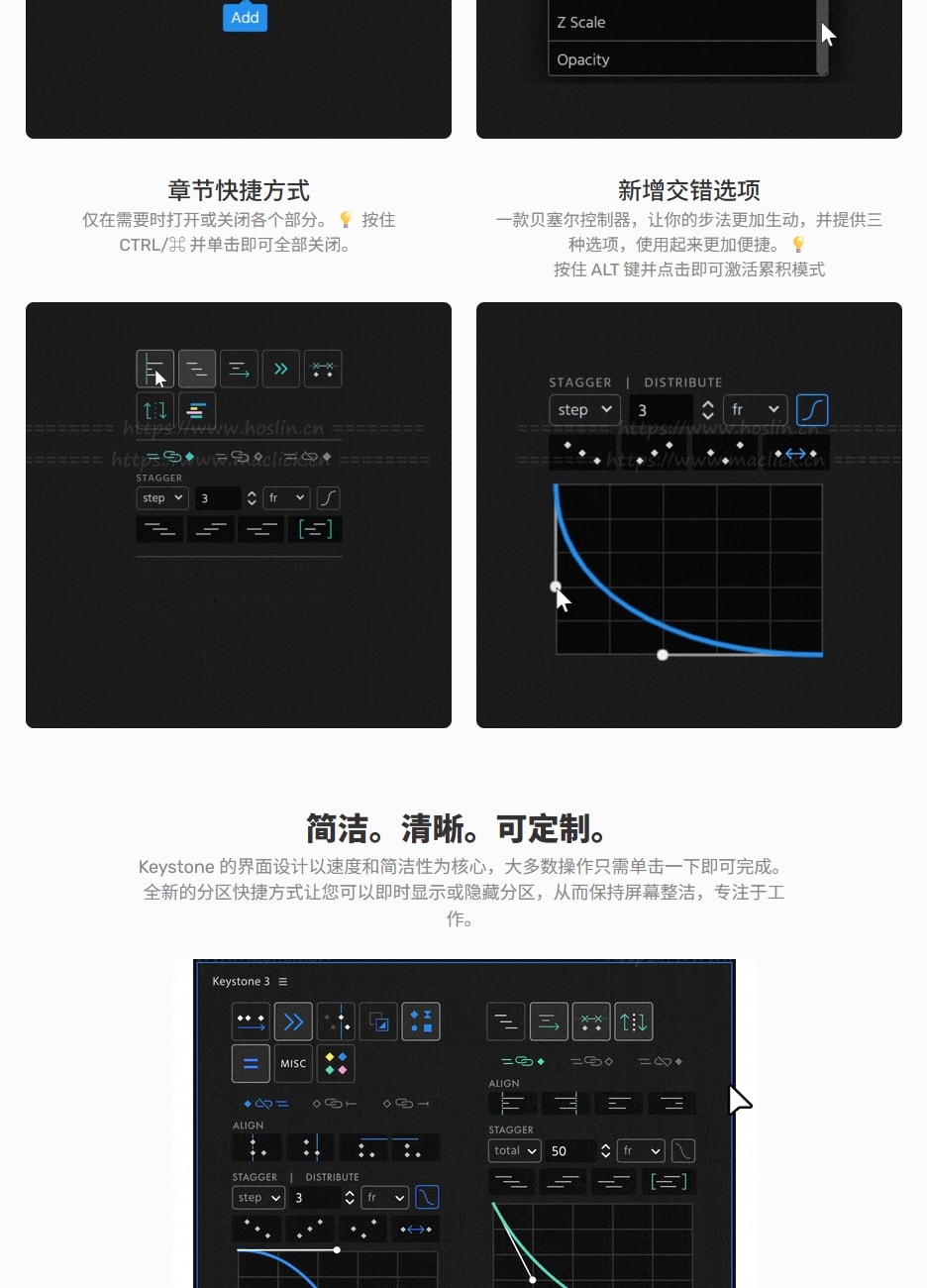- 为交错功能新增贝塞尔控制器。告别枯燥的线性偏移!