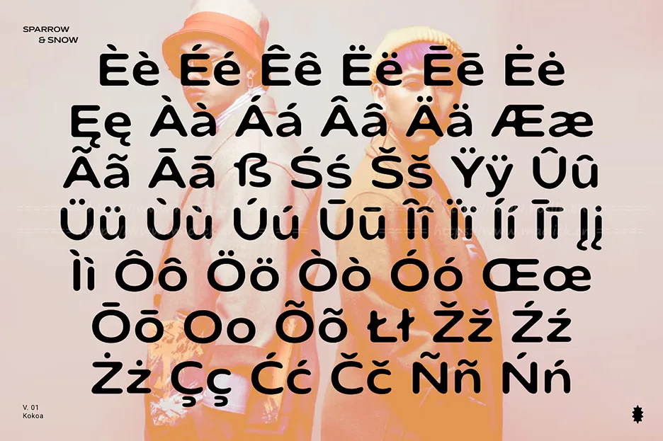 Kokoa 是 Sparrow&Snow 设计的一款无衬线字体,其圆润的外观给人一种自然、活泼的感觉,能够让您的设计项目真正脱颖而出。Kokoa 在标志和标题中表现良好,在段落文本中也保持了良好的可读性。Kokoa 包含多语言支持字符:大写字母、小写字母、数字、标点符号和特殊字符。