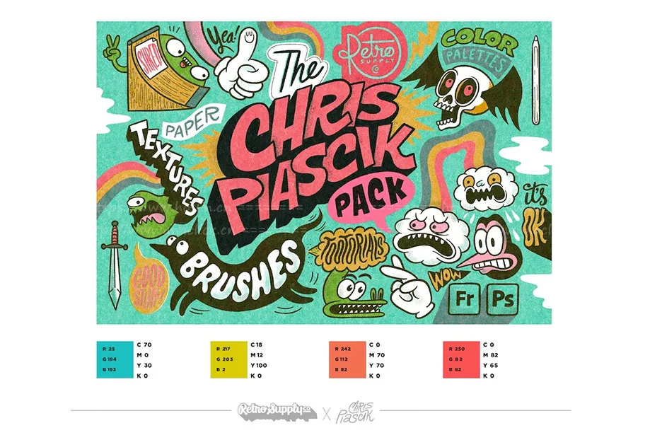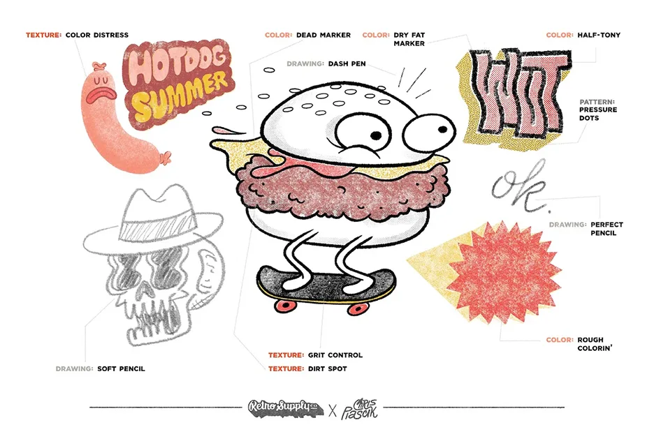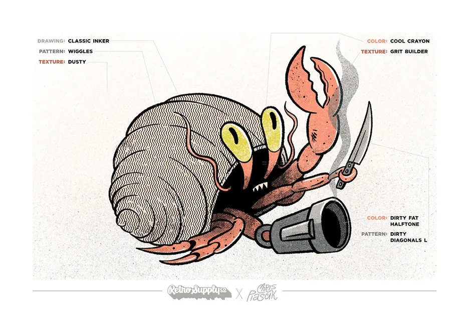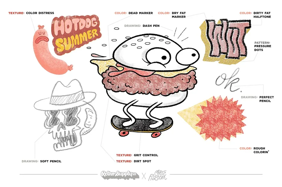 Chris 浏览了我们整个 RetroSupply 画笔库,精心挑选出他梦寐以求的插画工具包。