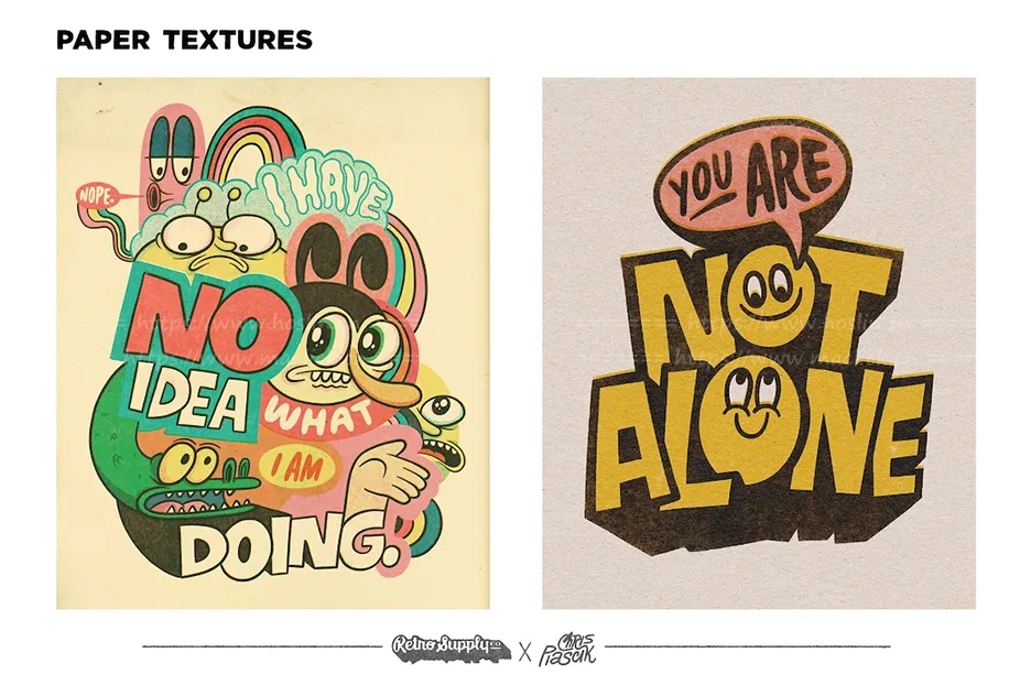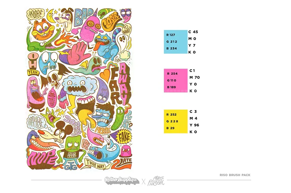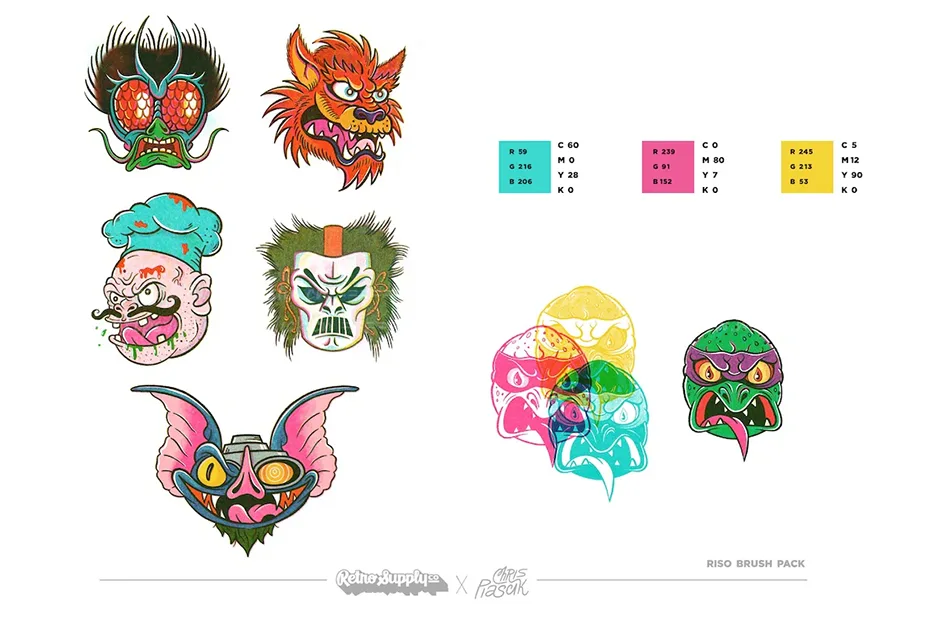 - 40支Riso画笔。这套丰富的Risograph画笔套装,助您轻松打造Chris标志性的纹理效果。轻松叠涂,见证美妙色彩和微妙变化如魔法般呈现。