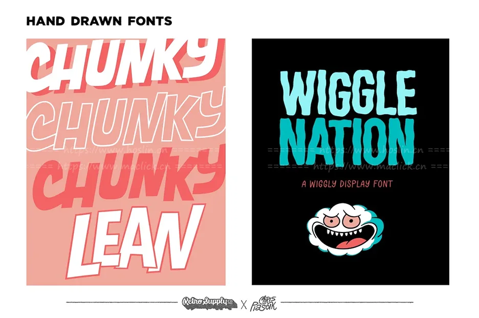 - 2 款字体。Get Chunky Lean 和 Wiggle Nation — 两款由Chris 设计的个性十足的字体!