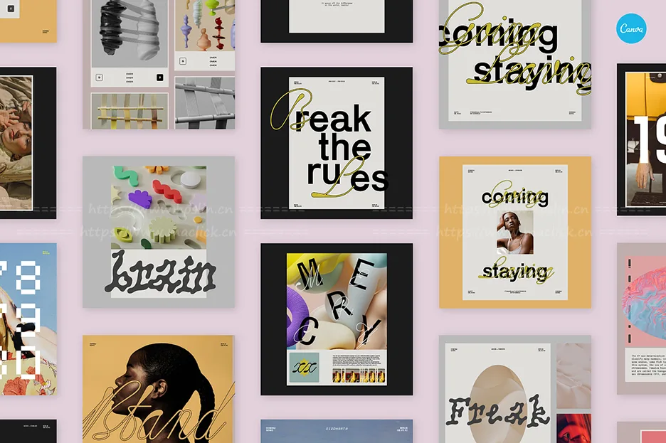 • 24 个 1600×1600 像素的方形模板(PS、Canva、XD)