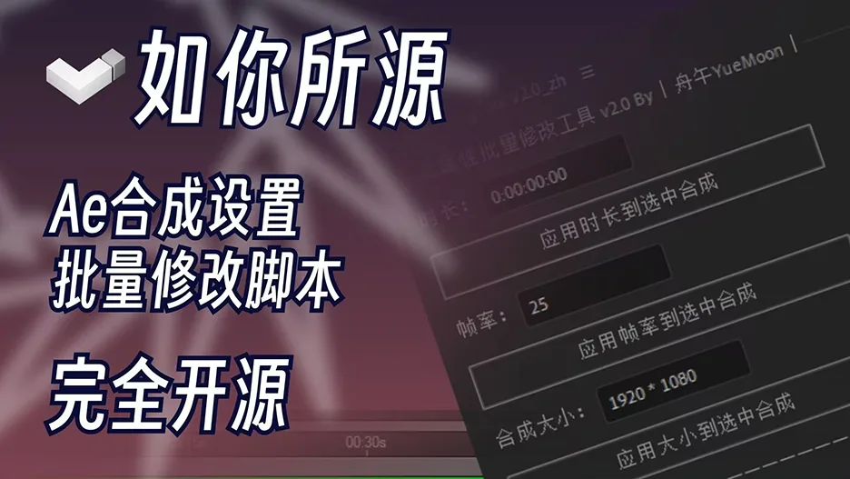 Comp Setting Tool 是一款轻量开源的 After Effects 脚本,可批量修改合成属性(时长、帧率、尺寸),支持嵌套子合成同步处理。脚本由@舟午 免费开源使用。