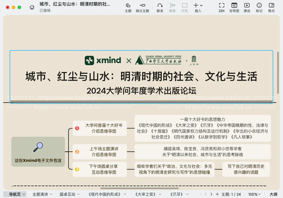 Xmind 原创的演说模式让思维导图成为演讲的全新体验。