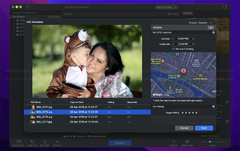 - 元数据工具:读取、编辑或删除 EXIF/IPTC/XMP 信息;应用版权和联系模板。