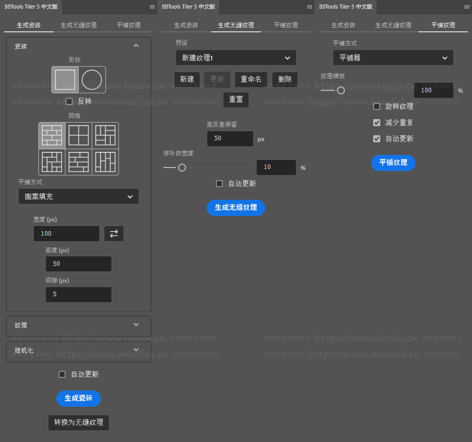v5.1.2更新内容:修复了“平铺纹理”选项卡中的错误。