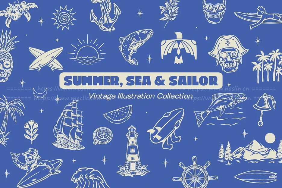 关于产品:Summer, Sea & Sailor – Vintage Adventure Illustration Set