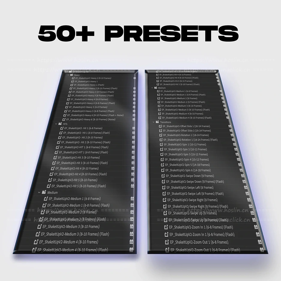 Shake It Up 2 是专为Adobe Premiere Pro 和 After Effects 设计的专业级摄像机抖动效果预设包。它提供50+ 拖放式预设和过渡效果(如旋转、闪光、缩放、击打等),能够在不手动打关键帧的情况下快速为视频添加真实的数码运动模糊和手持摇晃效果。只需将预设拖到调整图层上即可生动地增强画面活力,是让用户不再逐帧调整,通过预设轻松创造专业感的手持/动态镜头感。支持多种镜头风格,非常适合想快速提升剪辑节奏感与动态感的编辑者。
