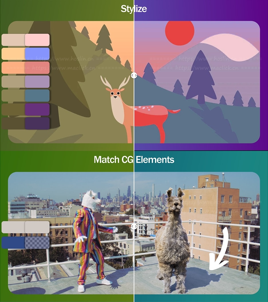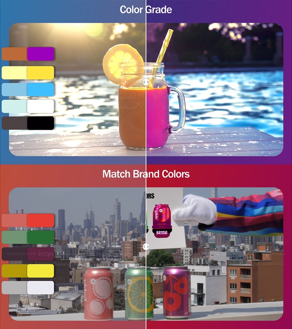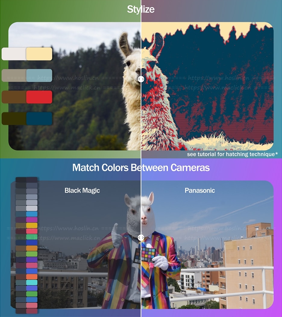 为 After Effects 和 Premiere Pro 设计的色彩处理插件,可让你快速精确地替换、匹配和调整视频中的颜色。它通过创建颜色对,将一种颜色变换成目标色,适合做镜头色彩匹配、品牌色统一、色彩校正或创意风格化效果。它还支持导出 LUT 色彩查找表,以便在其他软件中复用,同时提供平滑、锐利和海报化等多种混合模式,让色彩过渡自然或风格化更强。对于需要高效并可控色彩调整的剪辑和特效工作流程非常有用。