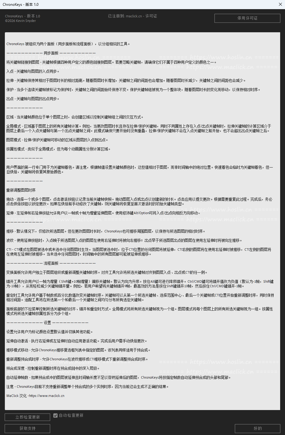 v1.0.1更新内容:在帧模式下,重新调整关键帧时间时,按 Alt 键会反转帧值。因此,值为 10 时,应用 Alt 键后帧值将变为 -10。